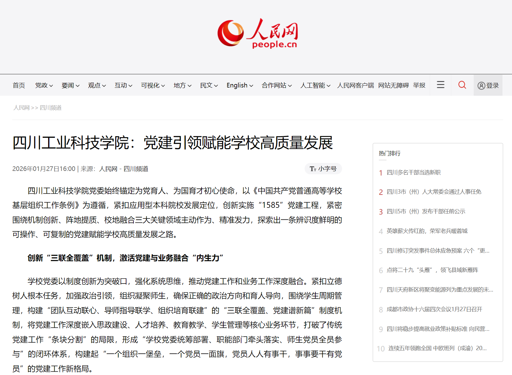 【人民网】四川工业科技学院:党建引领赋能学校高质量发展