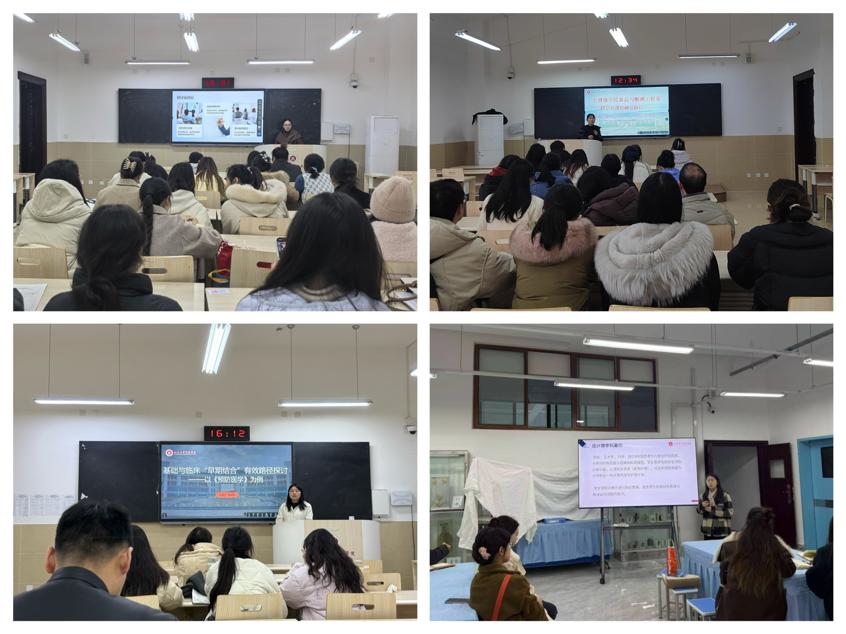 护理教研室聚焦教学实效,召开教学反思研讨会,“以思促教,以教促学,以学促护”,共同探究教学优化的新路径;轻工食品教研室以课程融合为抓手,深耕教学创新,研讨《营养与食品卫生学》与《食品安全学》跨学科衔接路径,提升教学质量与育人实效;基础医学教研室开展基础与临床“早期结合”路径研讨,推动医教融合,助力医学教育高质量发展;临床护理教研室秉持以爱育“护”、润心启智理念,深入研讨教学中关爱学生的多元策略与实践路径,赋能护理人才培育。