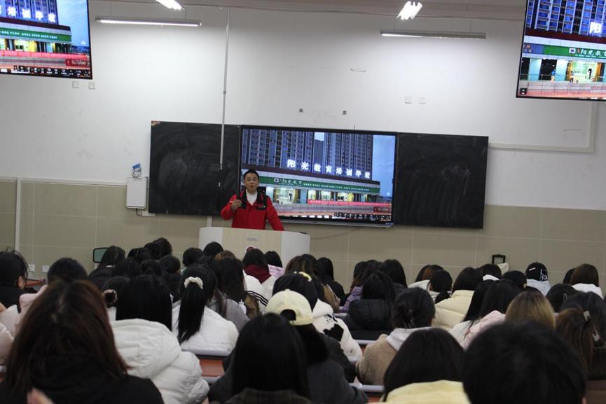 1月12日上午,教育学院特邀德阳市青少年宫与罗江阳光教育培训学校来校,面向学院大三、大四年级学生举办实习与就业宣讲活动。校团委书记谭玲、副书记夏陶,教育学院党总支书记李双晶、就业干事王誉晓出席活动。宣讲会由德阳市青少年宫刘老师与罗江阳光教育培训学校赵老师主讲。