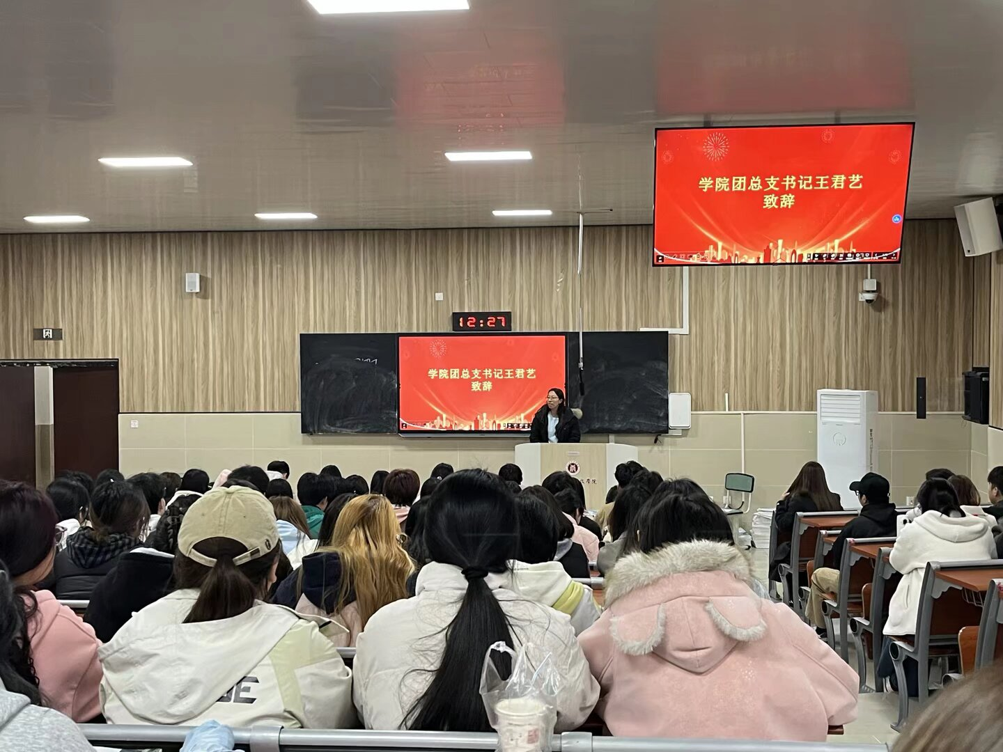 3月6日,经济管理学院在龑江B212教室召开本学期第一次经管团总支学生分会会议。学院团总支书记王君艺老师、主席团及各部门成员共计180余人参加本次会议。