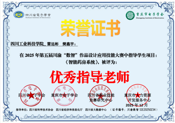优异的成绩离不开指导教师的辛勤付出与专业引领。本次大赛中,雷远彬、樊鑫宇教师团队以及李明悦、罗俊教师团队均被授予“优秀指导老师”称号,体现了学校教师在指导学生实践创新方面的扎实能力。