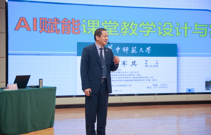 吴军其教授以“AI赋能课堂教学与学校管理”为题作专题报告。他通过大量鲜活的应用案例,详细介绍了人工智能技术在教学行为分析、课堂互动优化、学情精准研判、校园精细化管理等方面的实践成果,生动展现了AI技术在提升教学效率、优化管理模式、破解教育痛点中的重要作用,引发了参训教师的热烈讨论与深度思考。