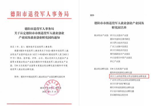 喜报!我校大学生创新创业孵化园获批市级退役军人就业创业孵化园称号
