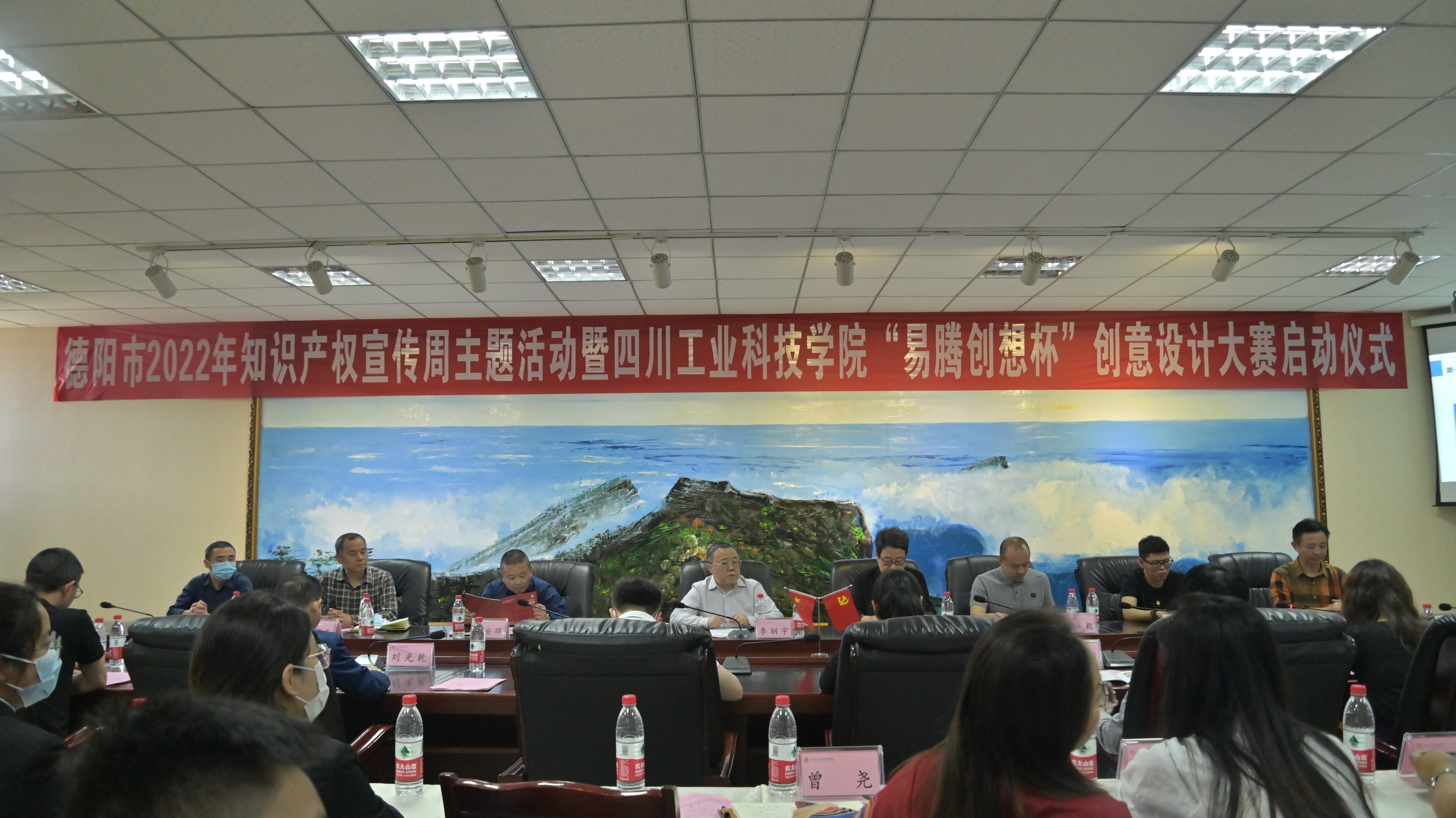 4月26日中午,德阳市2022年知识产权宣传周主题活动暨四川工业科技学院“易腾创想杯”创意设计大赛启动仪式在图书馆401会议室举行。学校副校长郭桂萍、德阳市市场监管局、罗江区市场监管局、成都易腾创想智能科技有限公司相关负责人和学校创新创业项目专家评审委员会成员及部分学生代表出席本次活动。