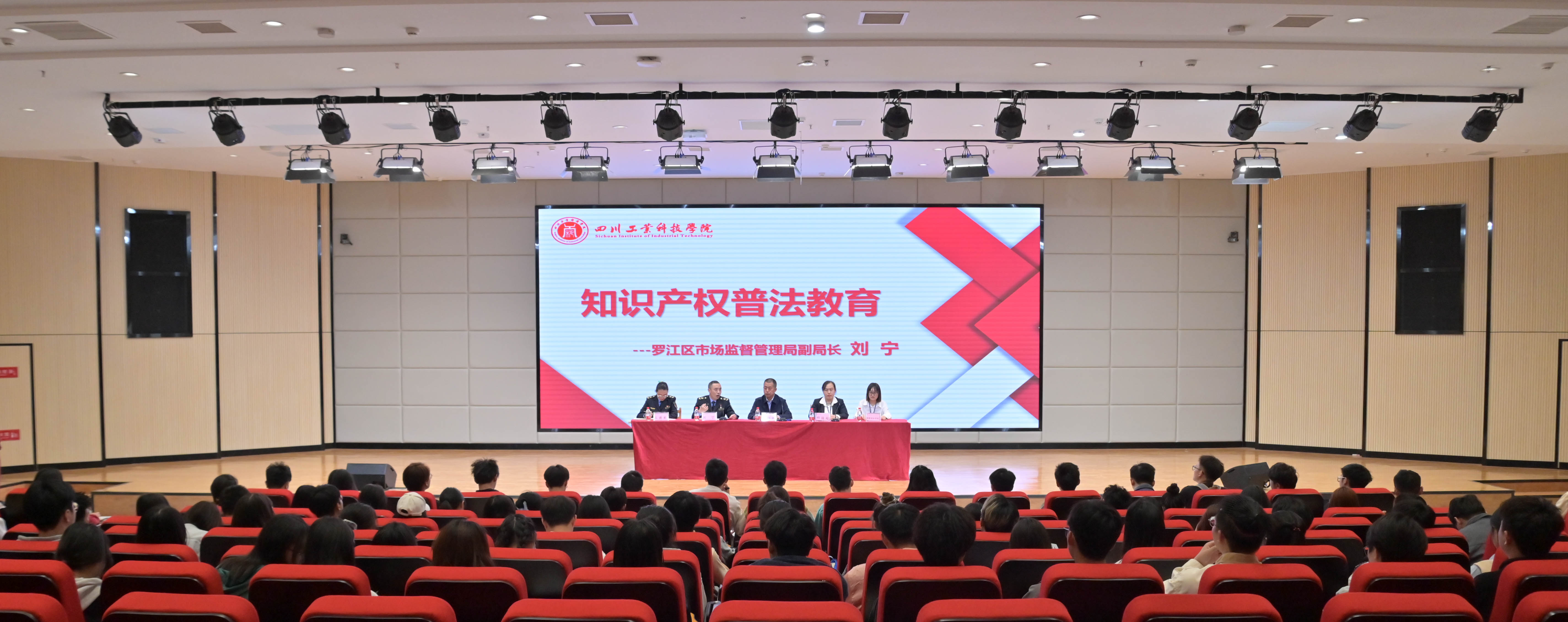 4月24日下午,四川工业科技学院知识产权宣传周开幕仪式在龑江学村C区学术报告厅举行。本次活动的主题是“加强知识产权法治宣传,有力支持全面创新”。学校党委书记张继华、罗江区市场监督管理局副局长刘宁、罗江区市场监督管理局办公室主任王德菊、学校科技处副处长刘翠出席了本次开幕仪式。300余名师生参加了开幕仪式。