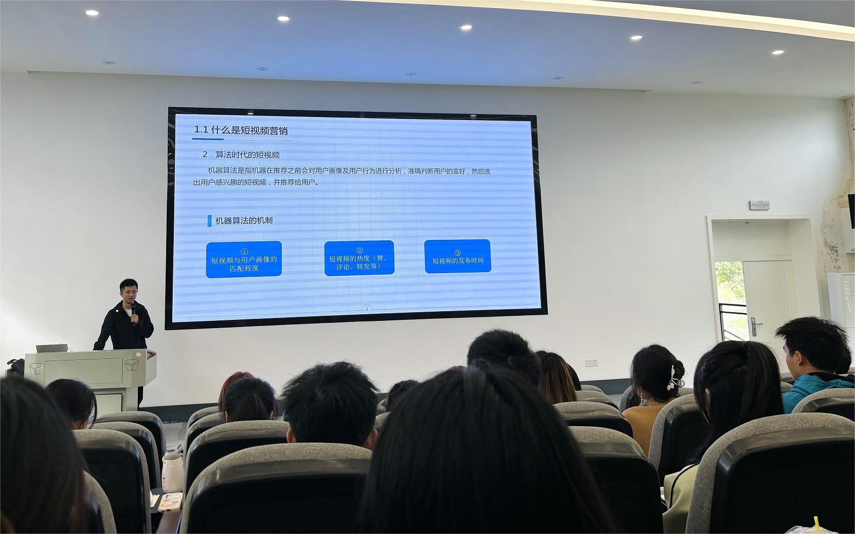 11月4日,德阳乡村振兴研究院院大学生创新创业大赛助农直播培训在西财天府学院进行。本次培训由区网信办指导,区邮政公司安排老师培训。培训一共有3场,分别是直播技能培训、网络意识形态安全和电商销售产品介绍,旨在为进入决赛的团队提升团队主播基本素质,促进团队交流学习。培训过程中,同学们认真聆听,不时记录笔记,并提出问题,相互交流。培训现场氛围严肃认真,洋溢着青春活泼的气息。