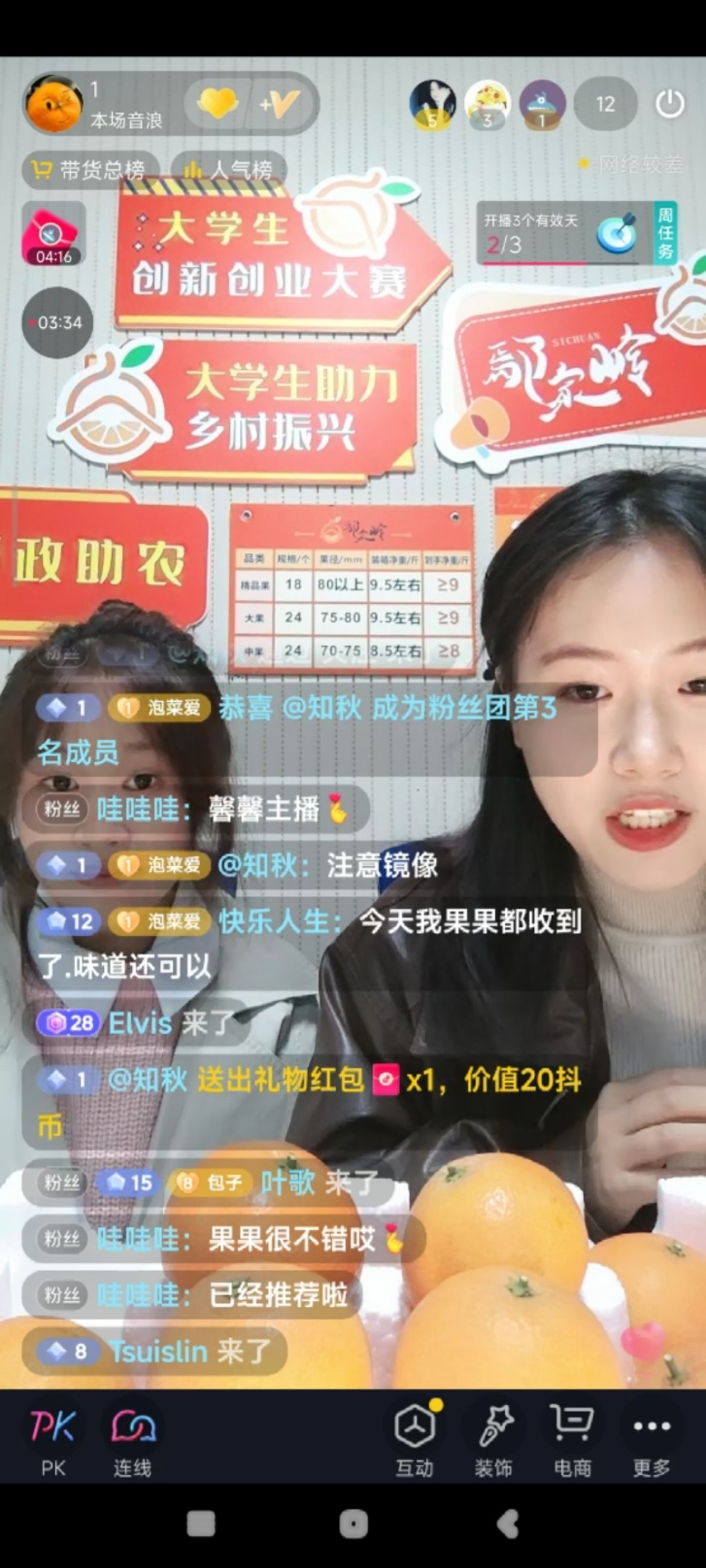 一开始对于直播大赛的想法,我们是不仅要让顾客有想买的欲望,还要顾客发觉到罗江农特产品的与众不同。我们计划从 “作为罗江的大学生,我们能够为罗江做什么”出发。网络上看直播的中青年人占了很大比例,这些人可能是大学生、工作远离故乡的人或者是家里有二三十岁孩子的中年人。所以我们像家乡、大学生、农产品、助农这样的关键词很容易引起直播间观众的共鸣。这种共鸣是消费者与产品之间的,而主播作为一个中间人,为顾客提供一个情感交流的途径。