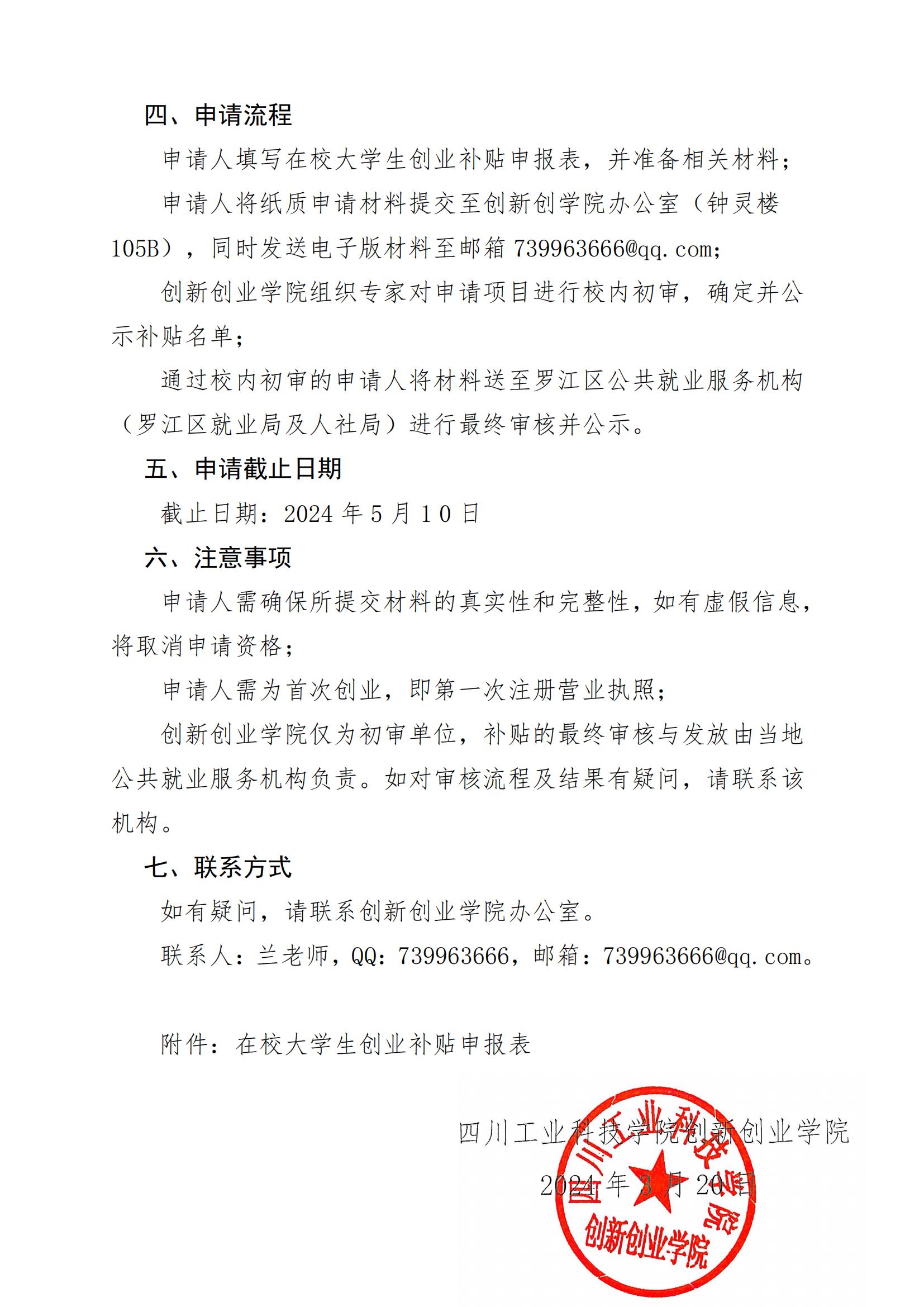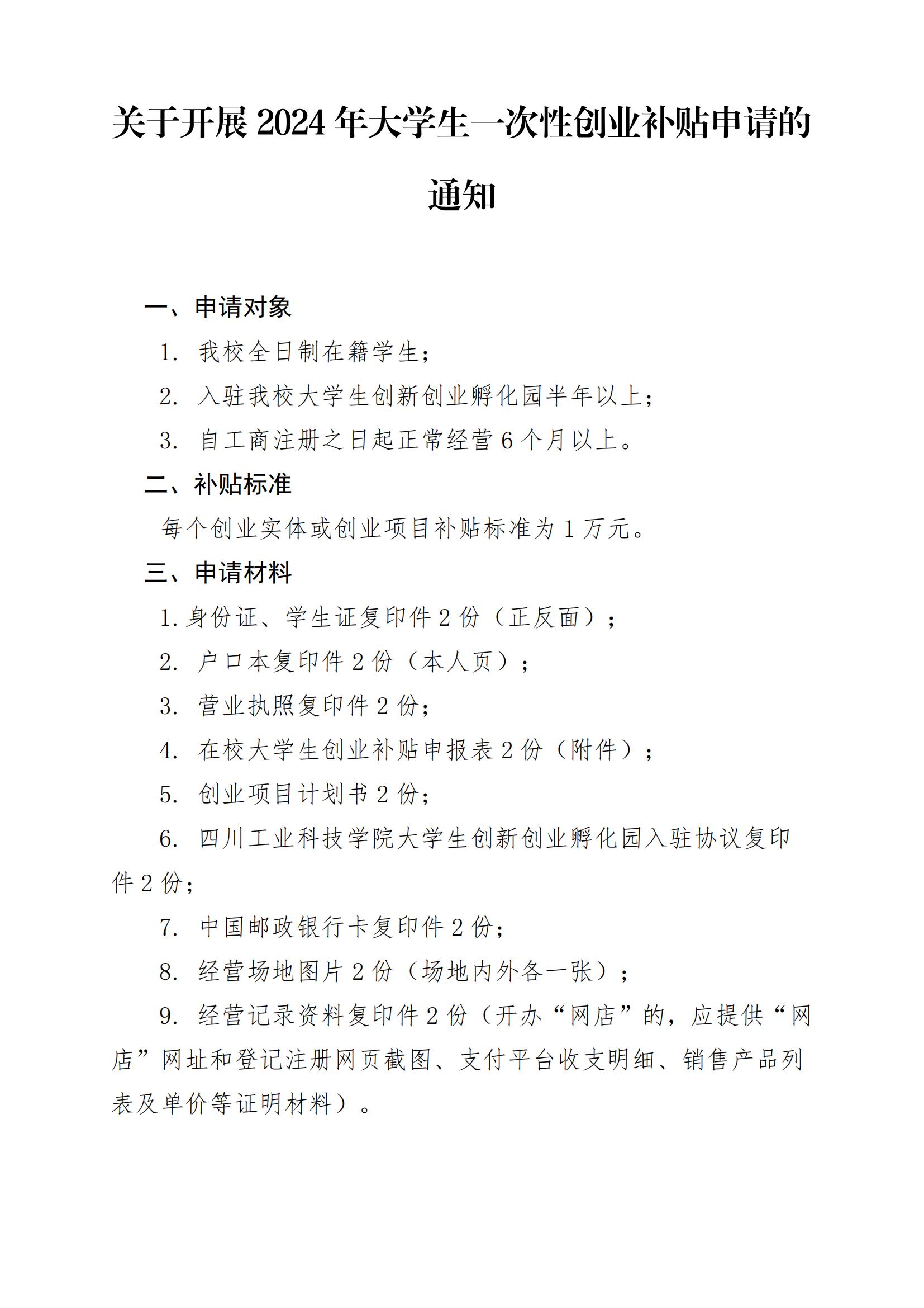 关于开展2024年上半年大学生一次性创业补贴申请的通知