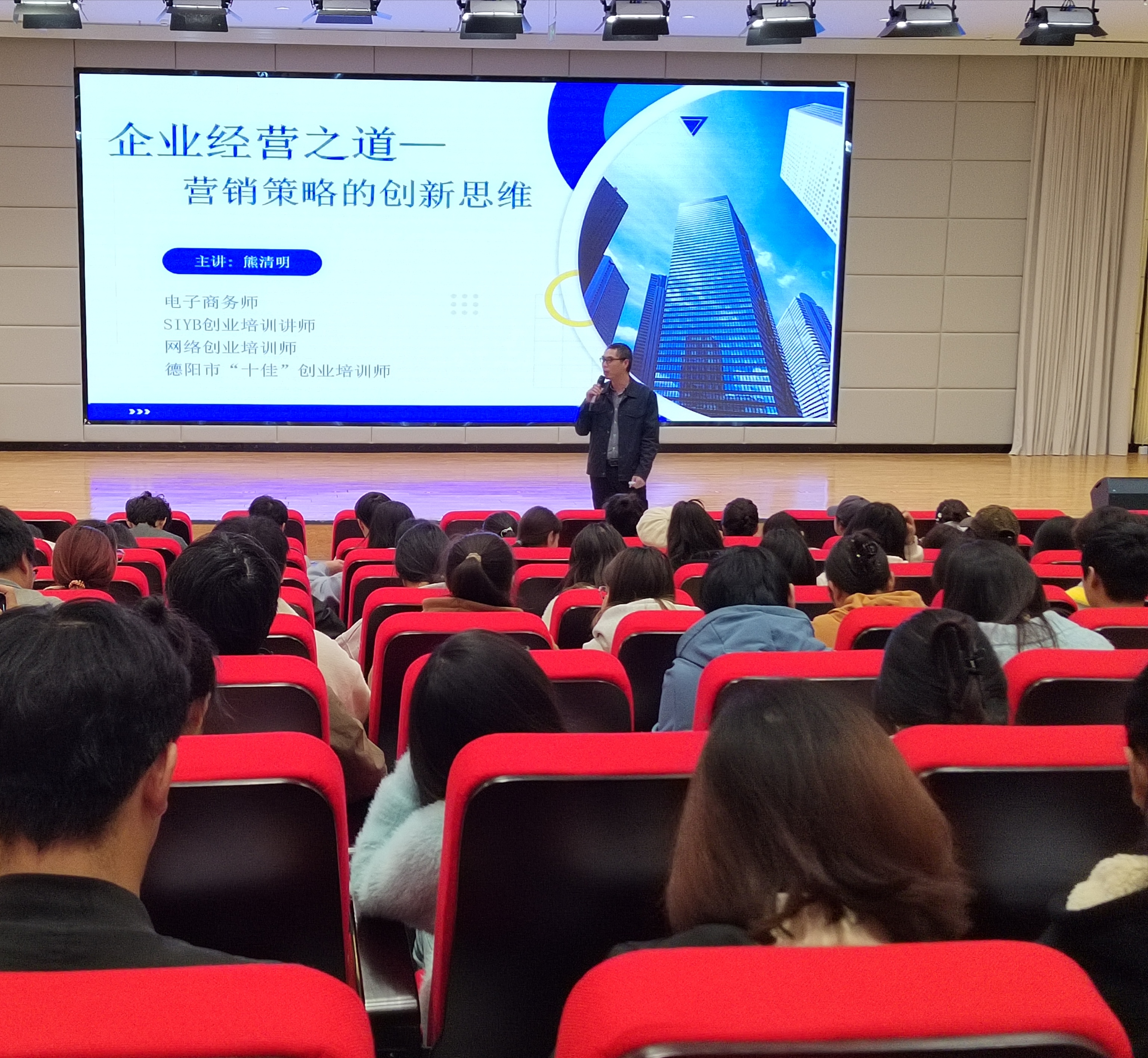 11月6日,创新创业学院于C区报告厅组织开展“企业经营之道——营销策略的创新思维”专题讲座。讲座特邀教育部本科论文评审专家、SIYB创业培训讲师、德阳市“十佳”创业培训师熊清明担任主讲。全校学生踊跃参与,现场学习氛围热烈。