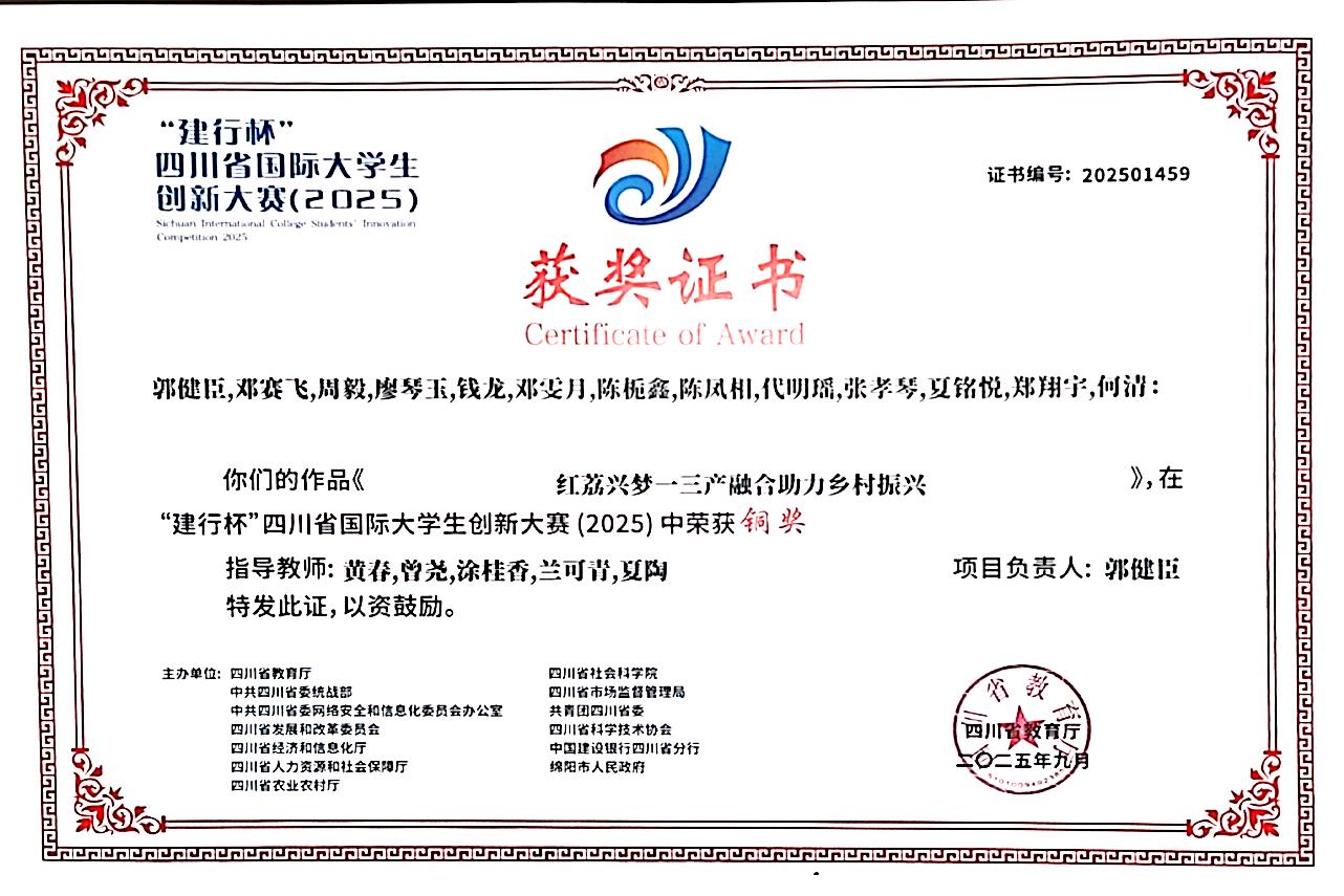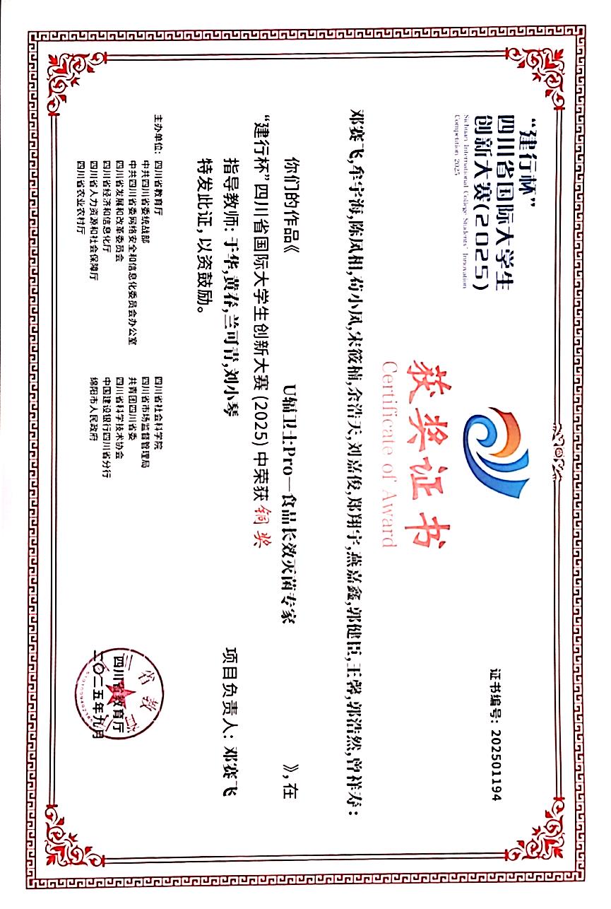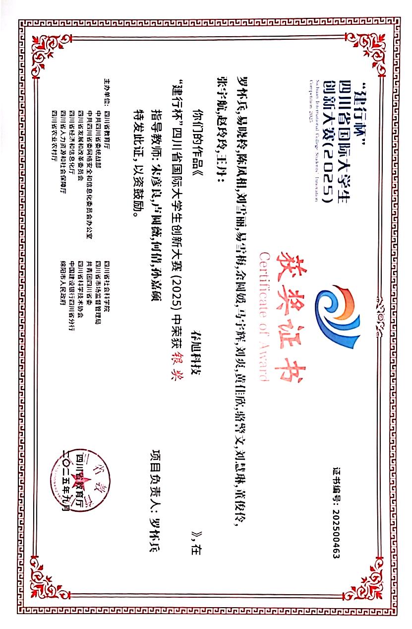 7月17日,四川省国际大学生创新创业大赛省级决赛在西南科技大学落幕。学校选派的三支参赛团队凭借出色表现,最终荣获“一银两铜”的优异成绩。其中,罗怀兵负责的“春旭科技”项目与邓赛飞带领的“U辐卫士Pro”项目分获高教主赛道银奖和铜奖;郭健臣团队的“红荔兴梦”项目斩获“青年红色筑梦之旅”赛道铜奖,实现学校在该赛道奖项零的突破。
