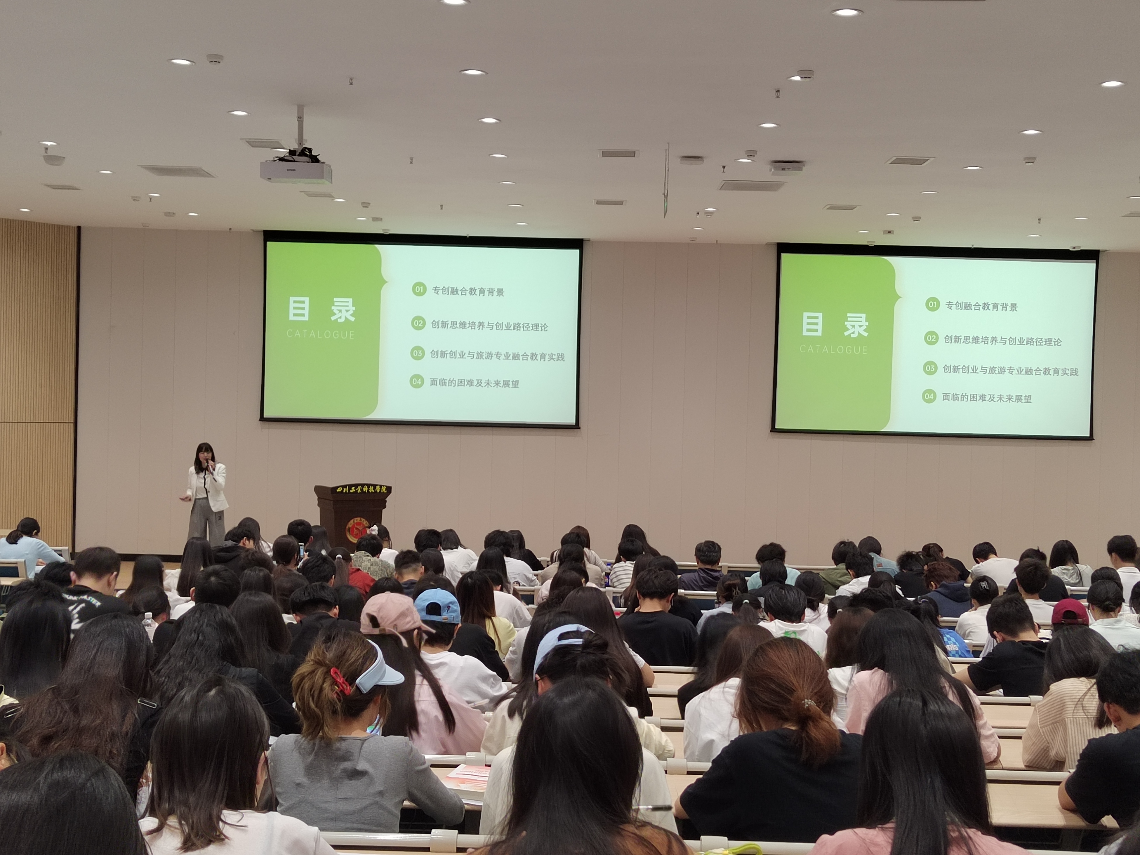 4月24日,创新创业学院邀请德阳市文化旅游发展研究中心负责人林梅老师,举办《旅游管理专业创新思维与创业融合教育:从理论到实践》专题讲座。400余名学生参加活动,现场互动气氛热烈。