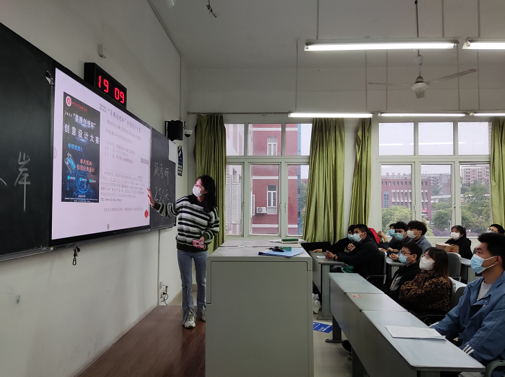 ”创意设计大赛主题宣讲,感谢智能制造学院领导和辅导员老师们给同学们宣讲锻炼机会。