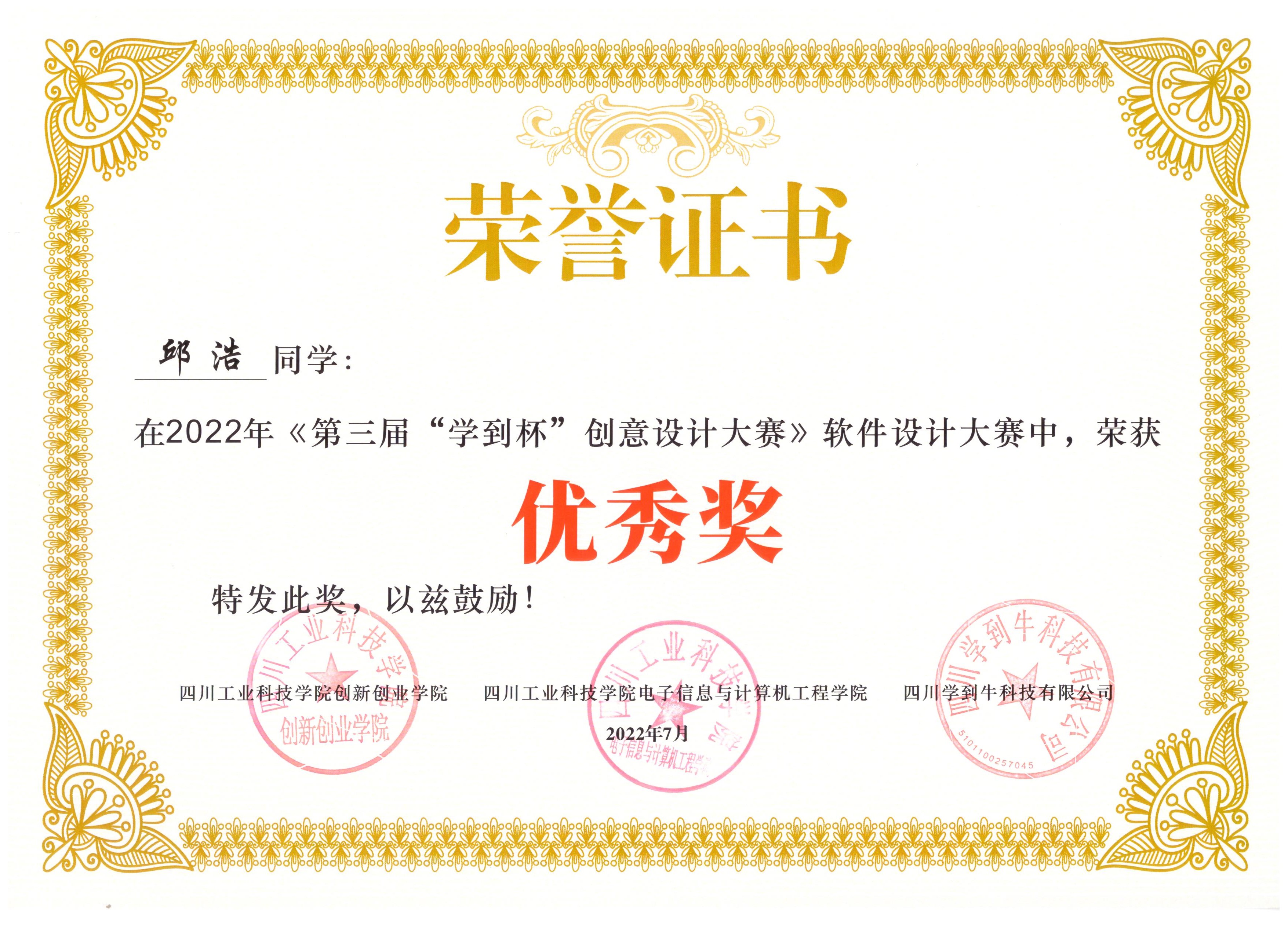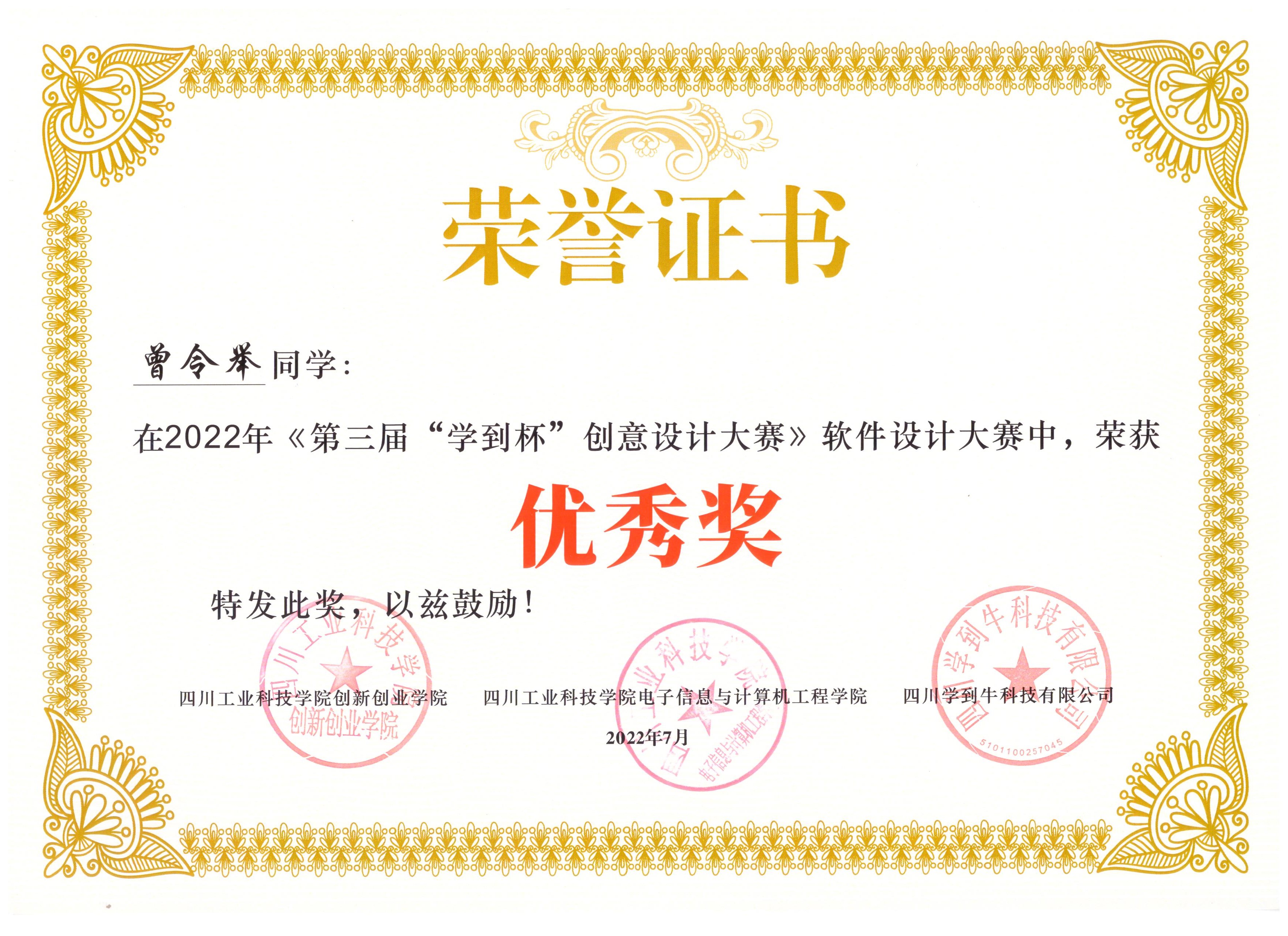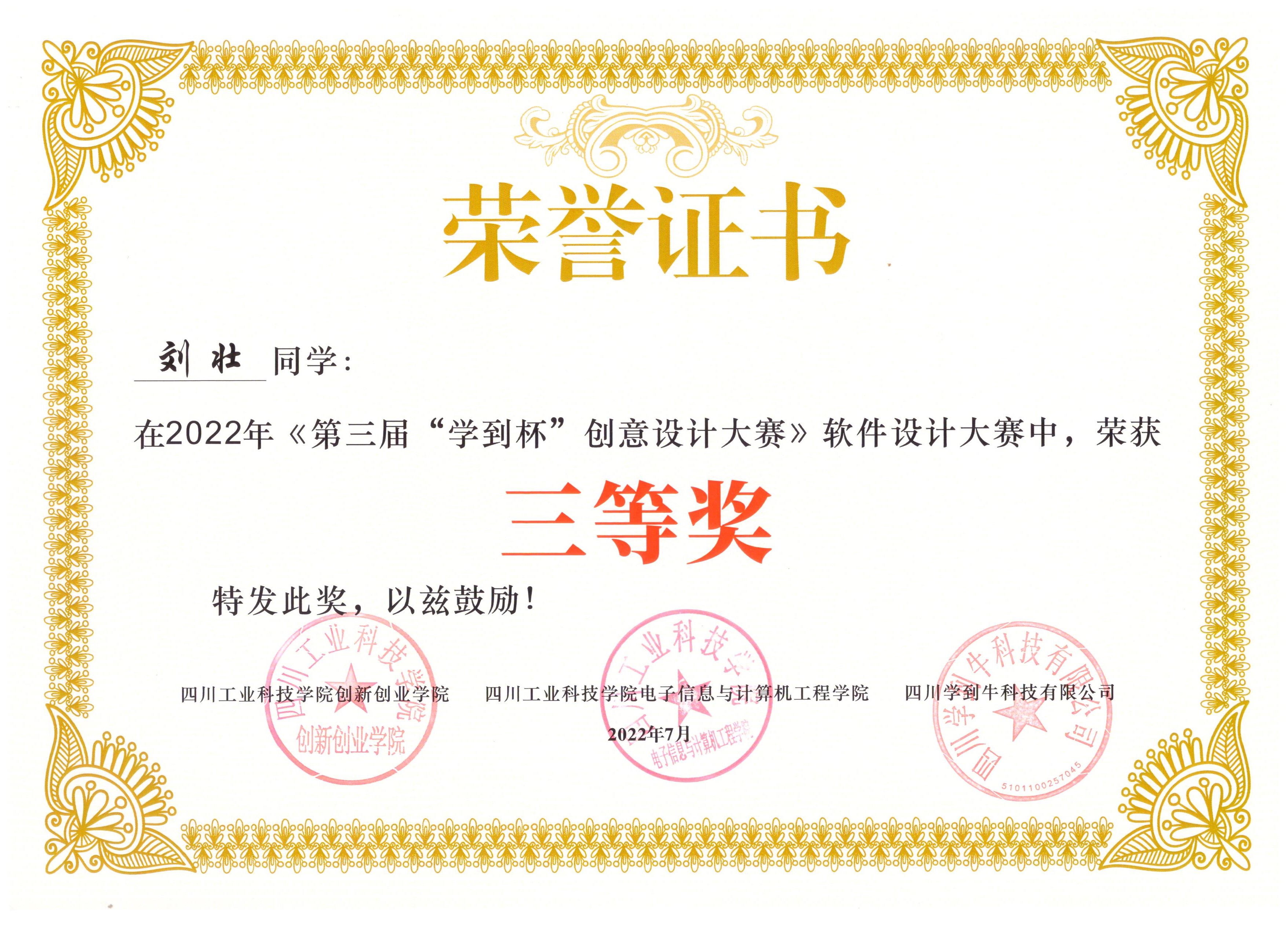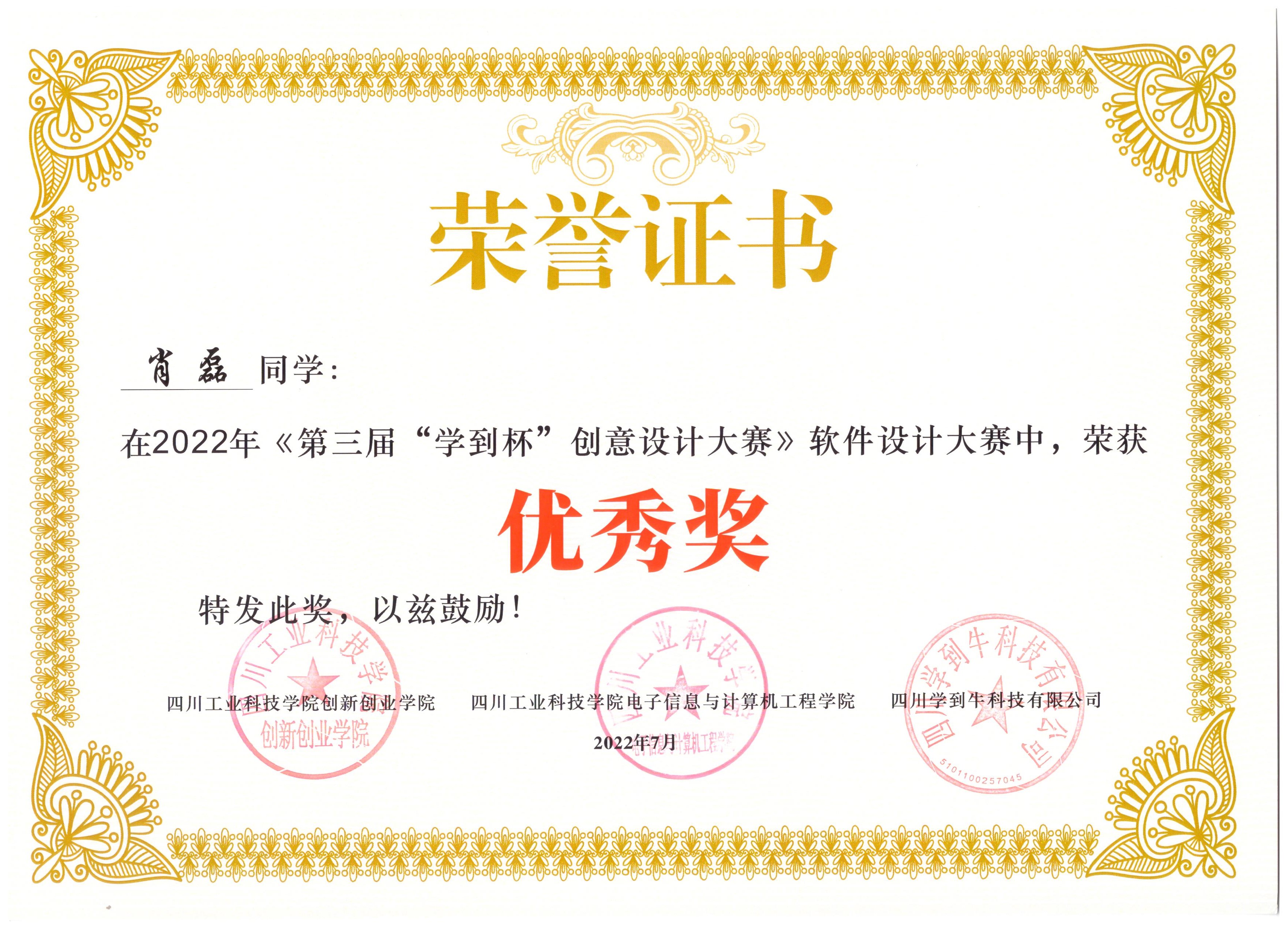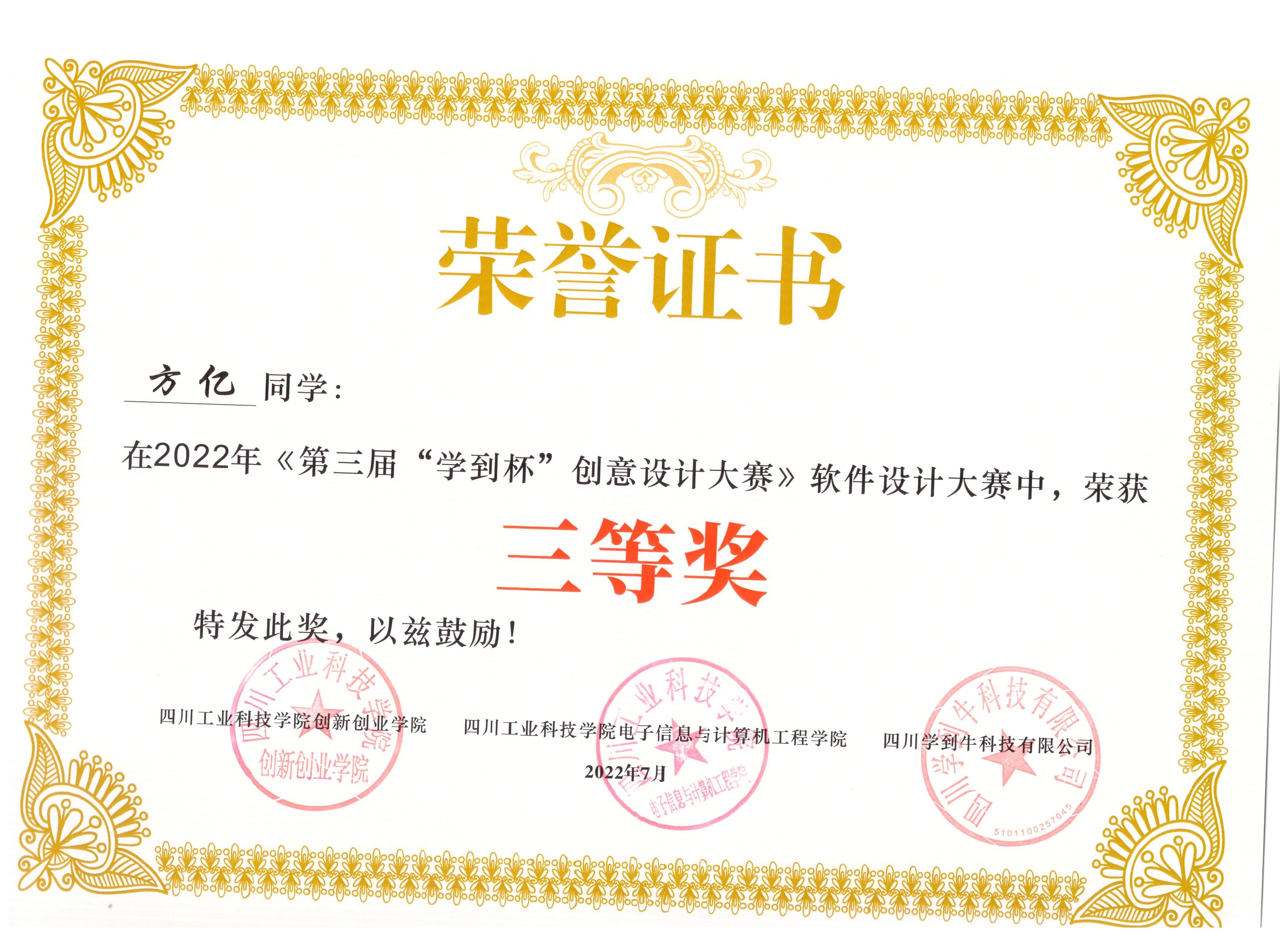 2022《第三届“学到杯”创意设计大赛》软件设计大赛奖状