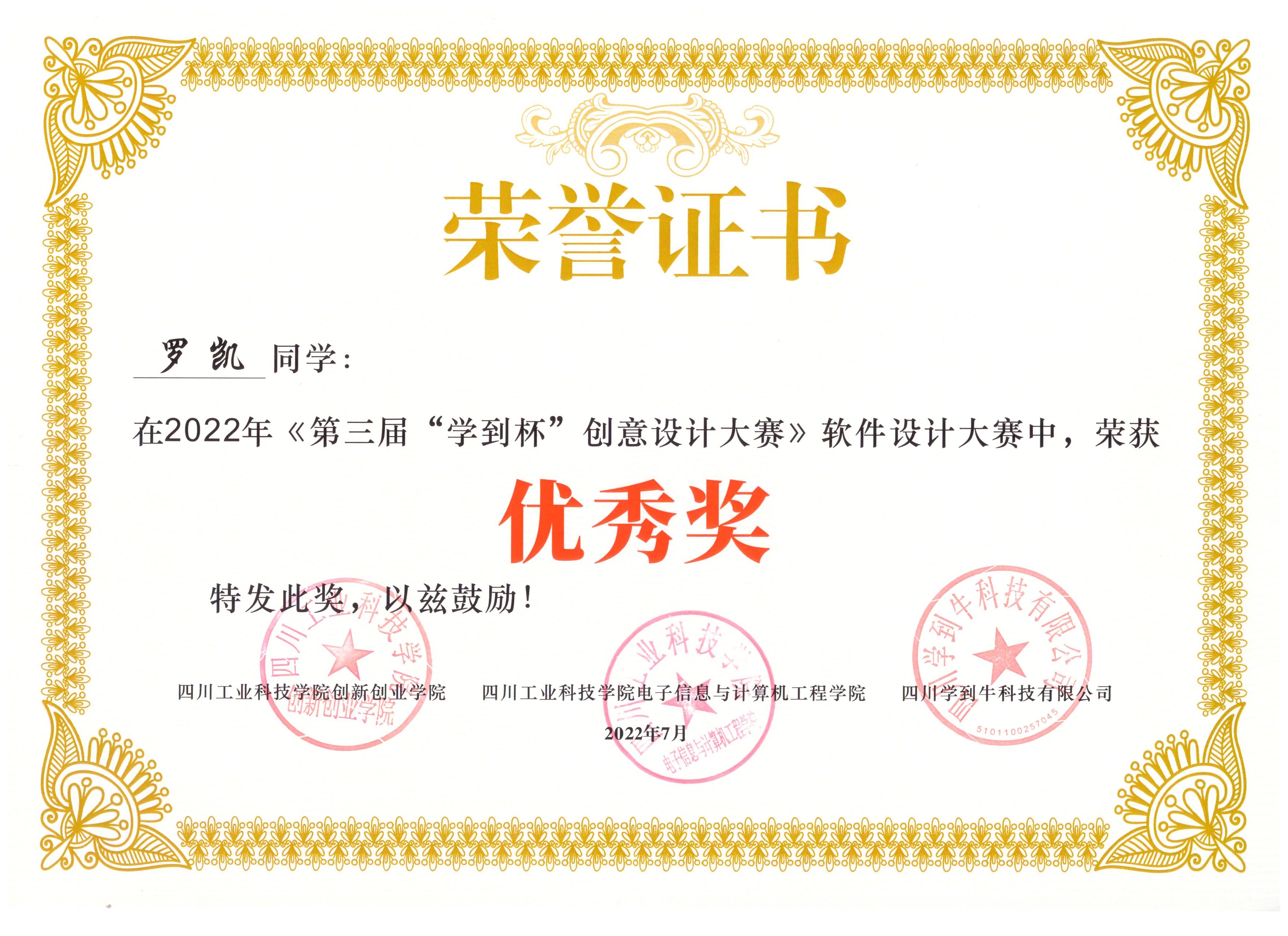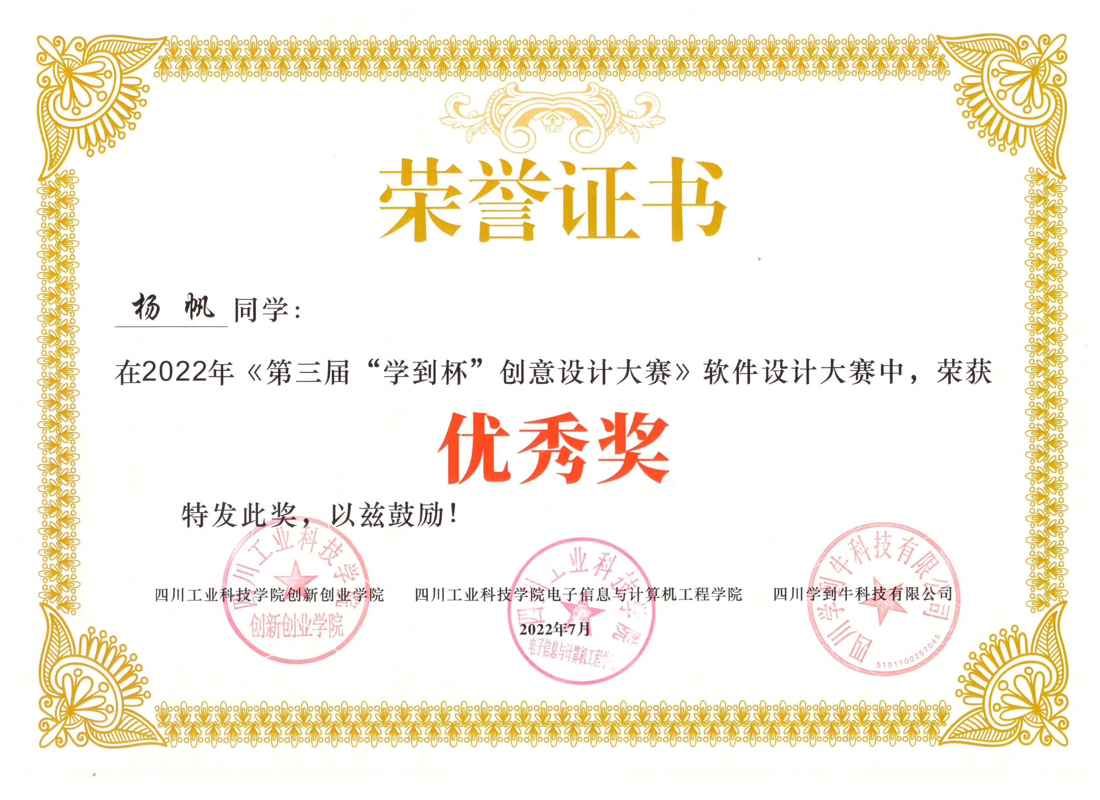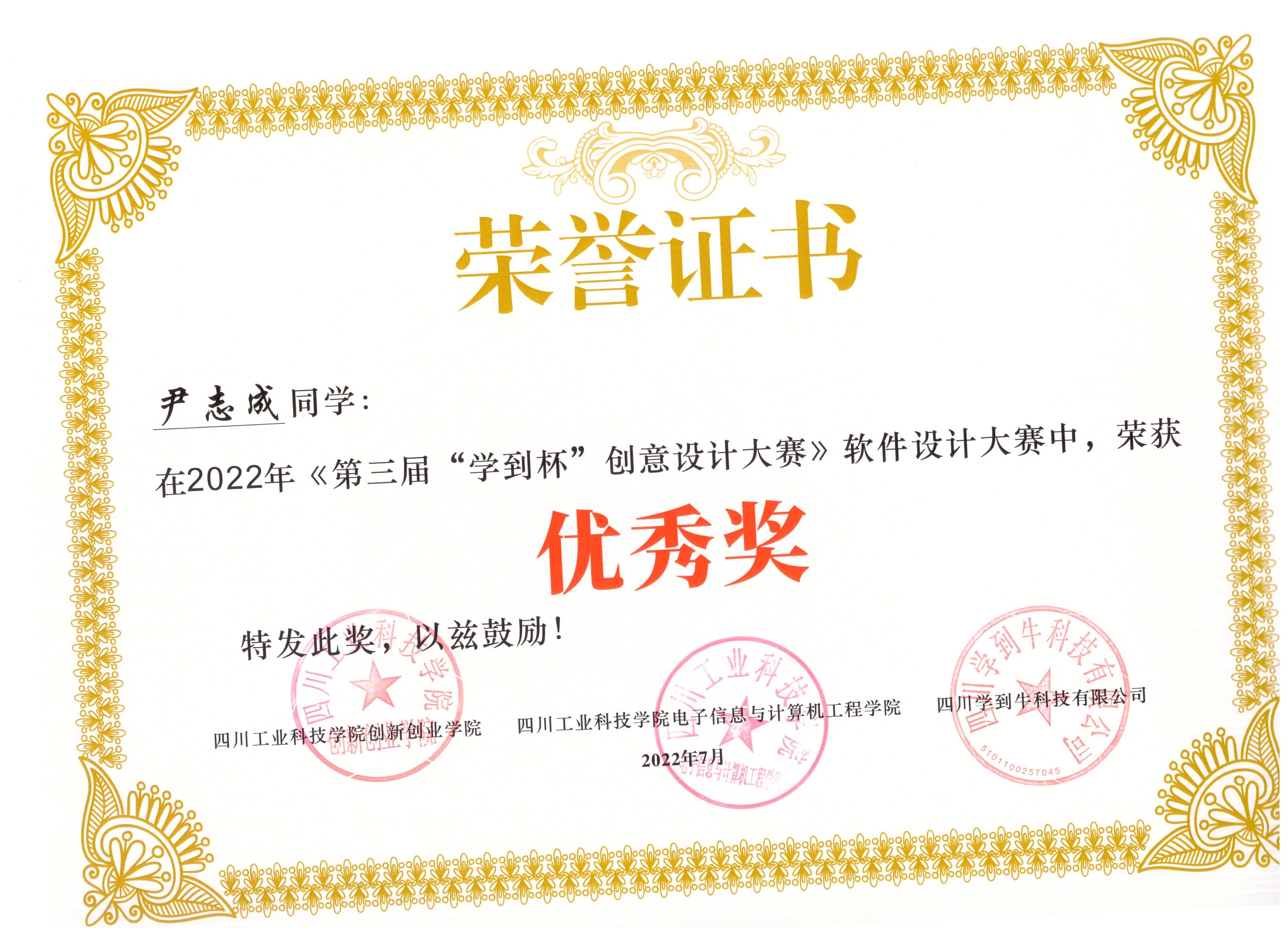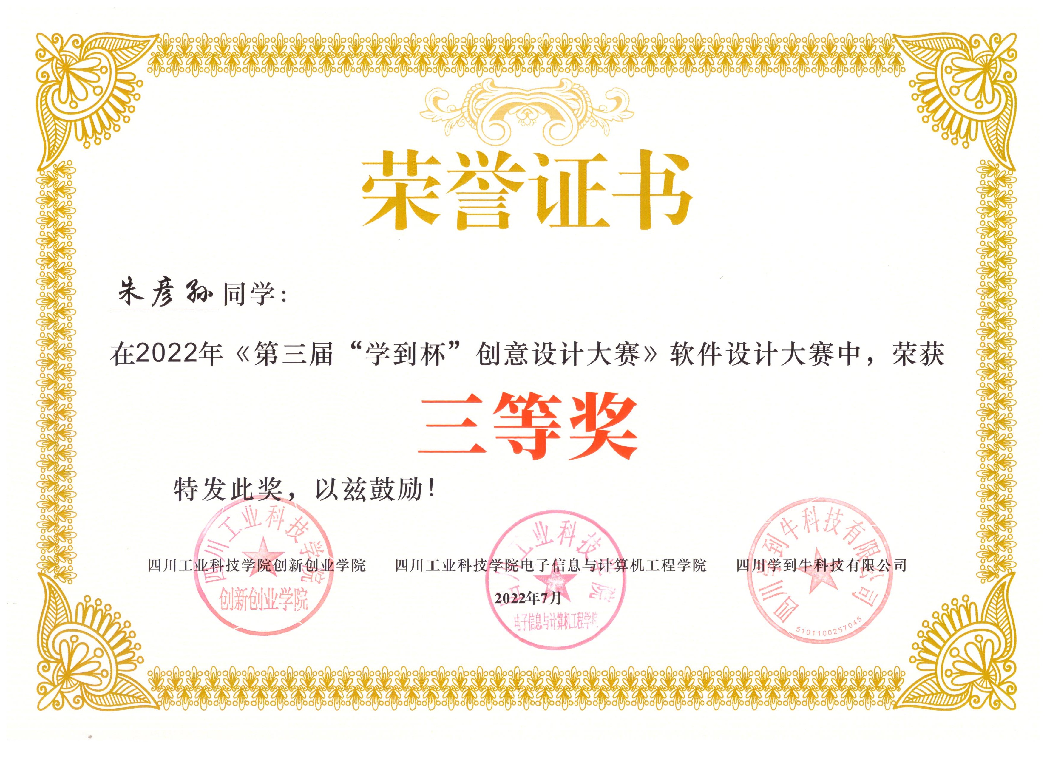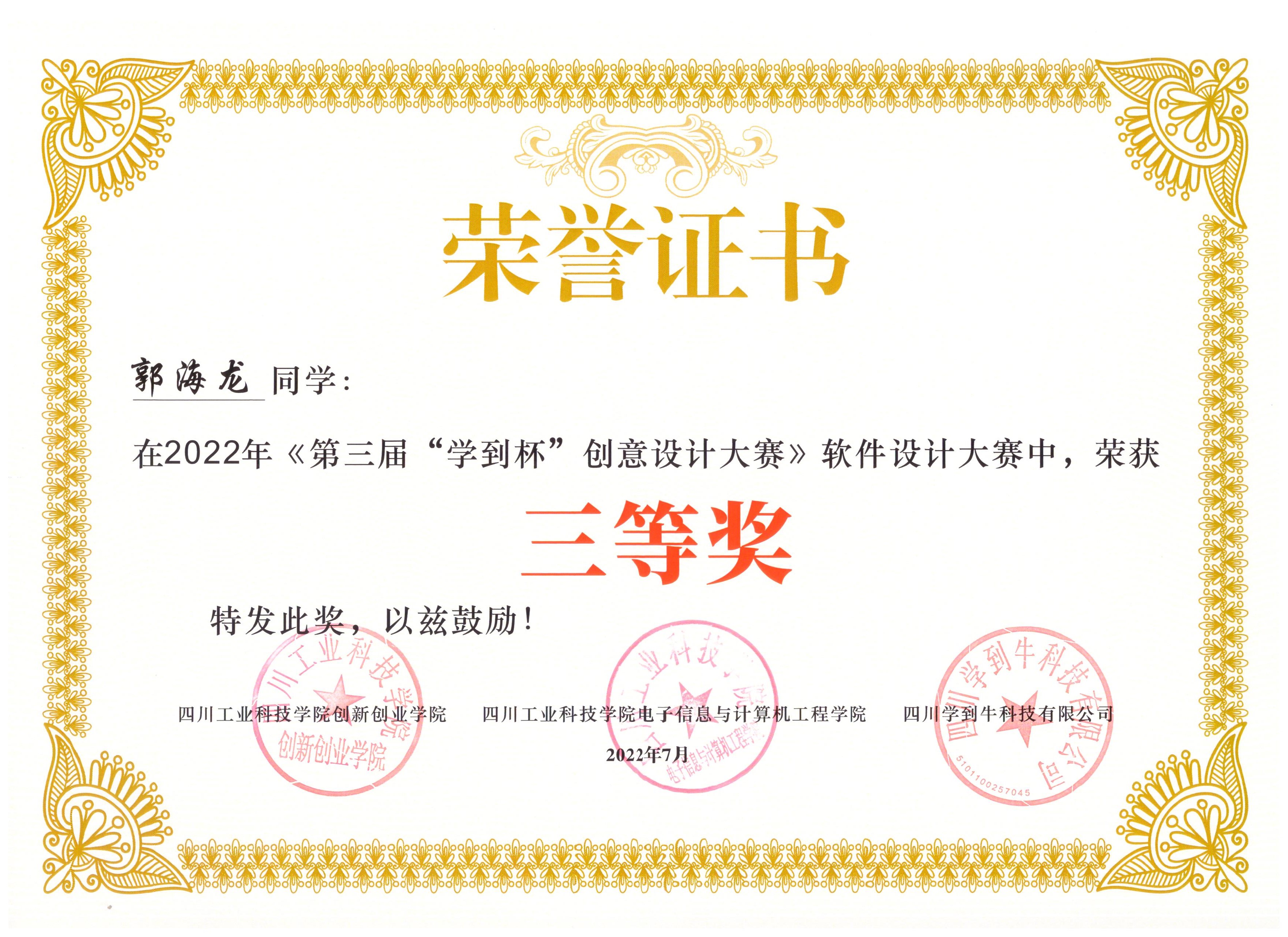 2022《第三届“学到杯”创意设计大赛》软件设计大赛奖状