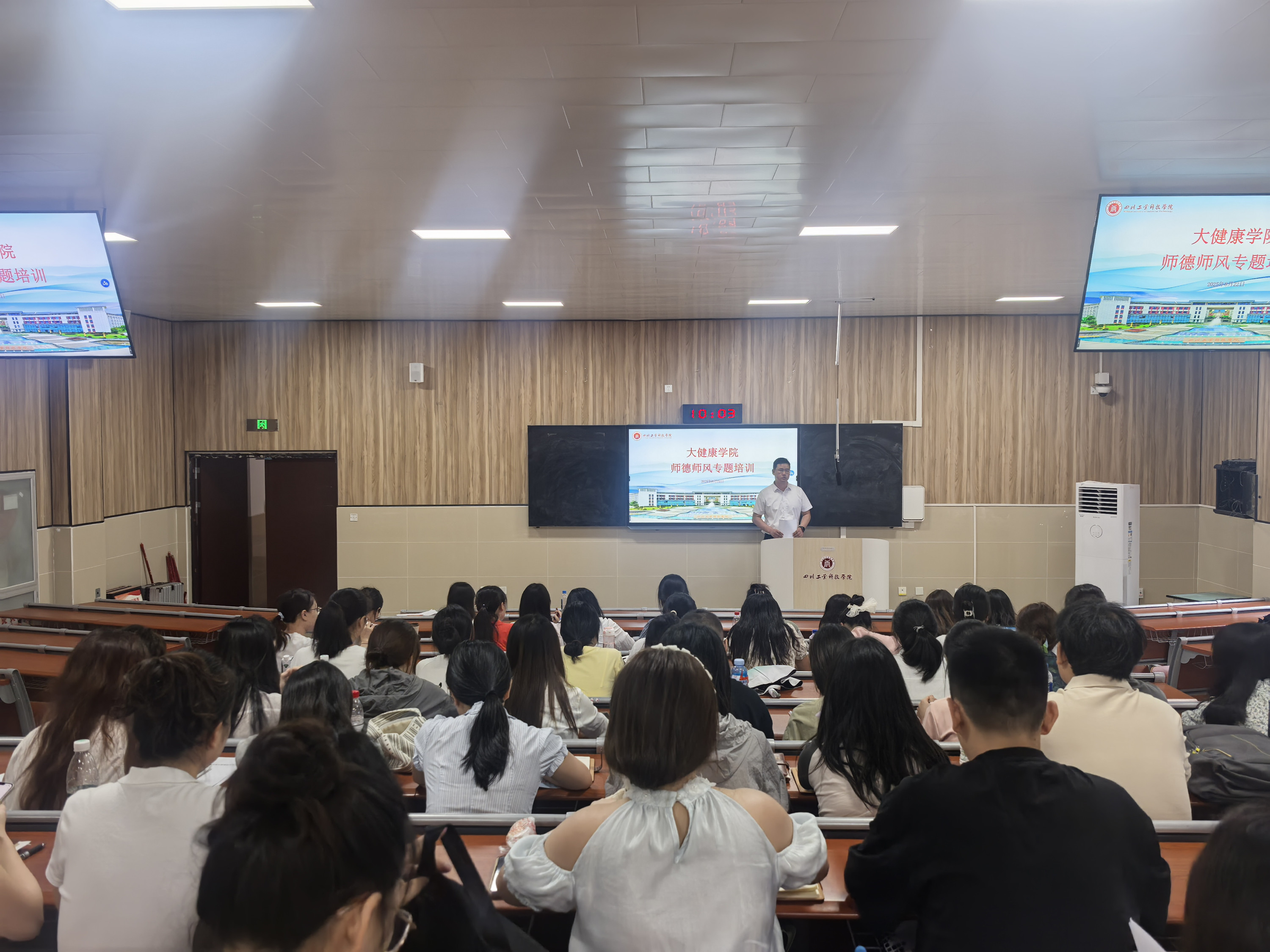 8月22日,大健康学院在龑江B-212教室开展师德师风专题培训,深入学习贯彻教育部关于加强师德师风建设的总体要求。培训由副院长杨橙主持,全体教师参加学习。