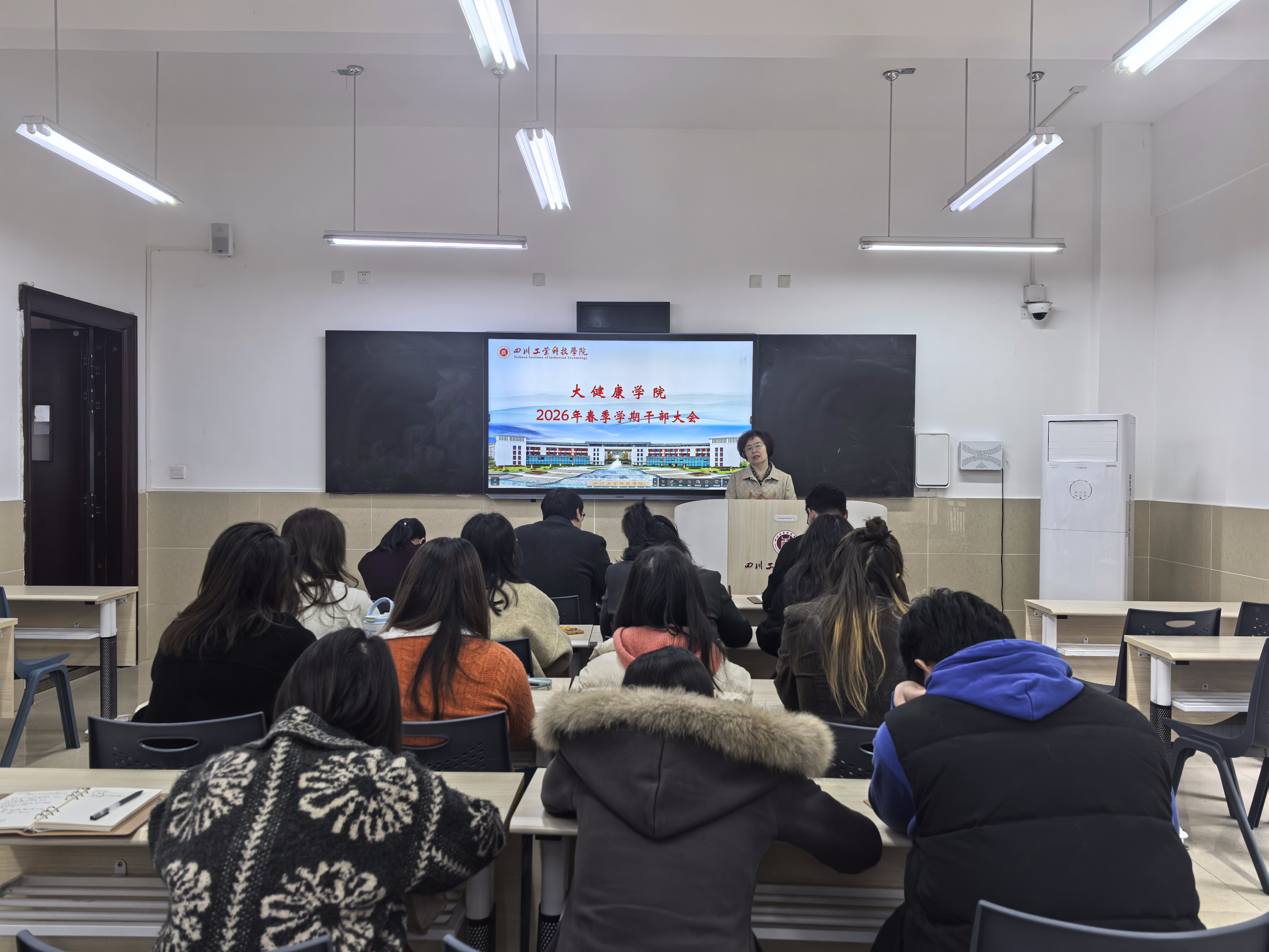 2月27日上午,大健康学院召开2026年春期干部大会。学院领导、各教研室主任及相关职能部门负责人参加会议,会议由学院副院长杨橙主持。