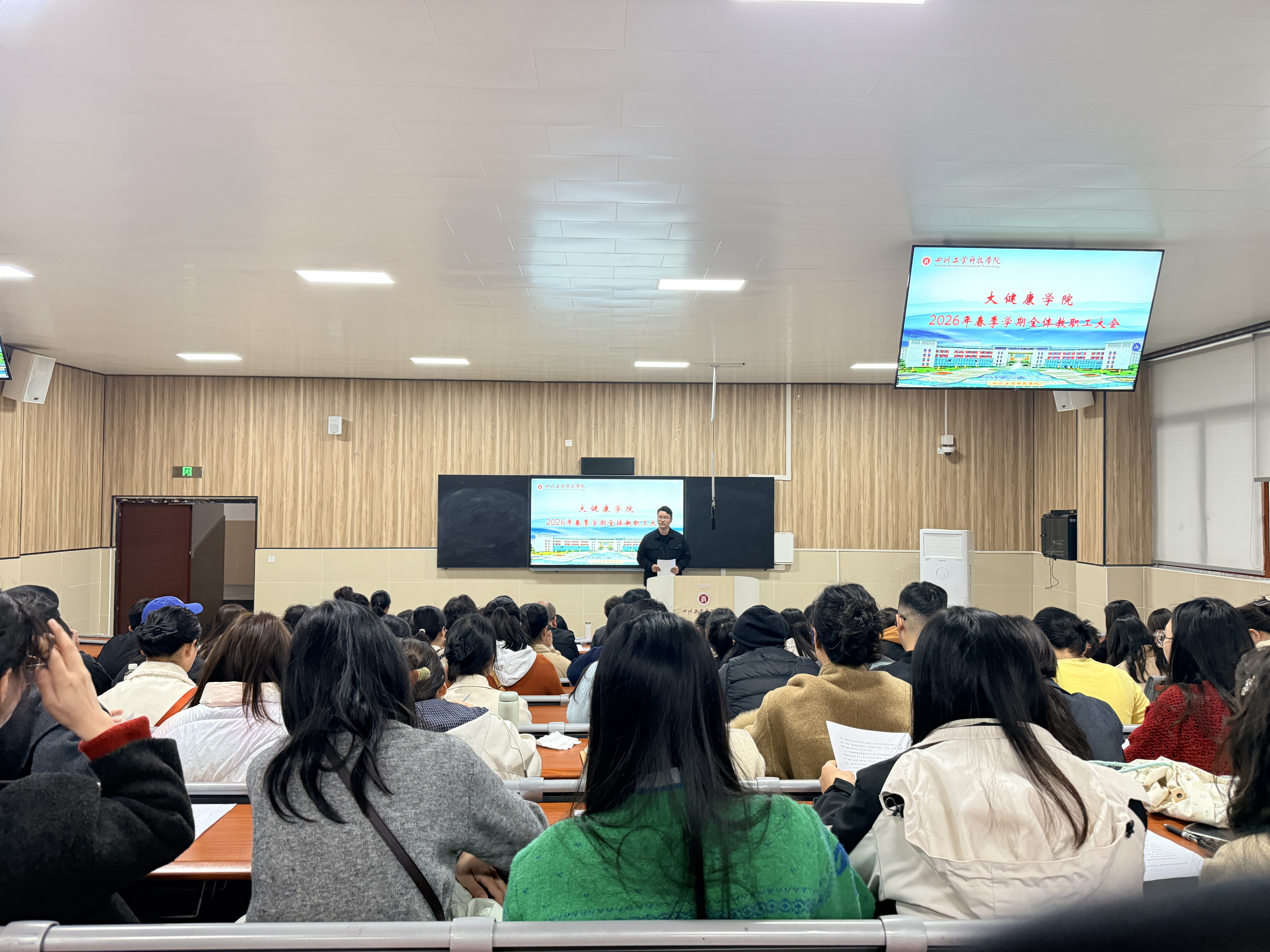 2月27日,大健康学院2026年春季学期全体教职工大会在龑江B212教室召开。会议由副院长杨橙主持,学院全体教职工参加会议。
