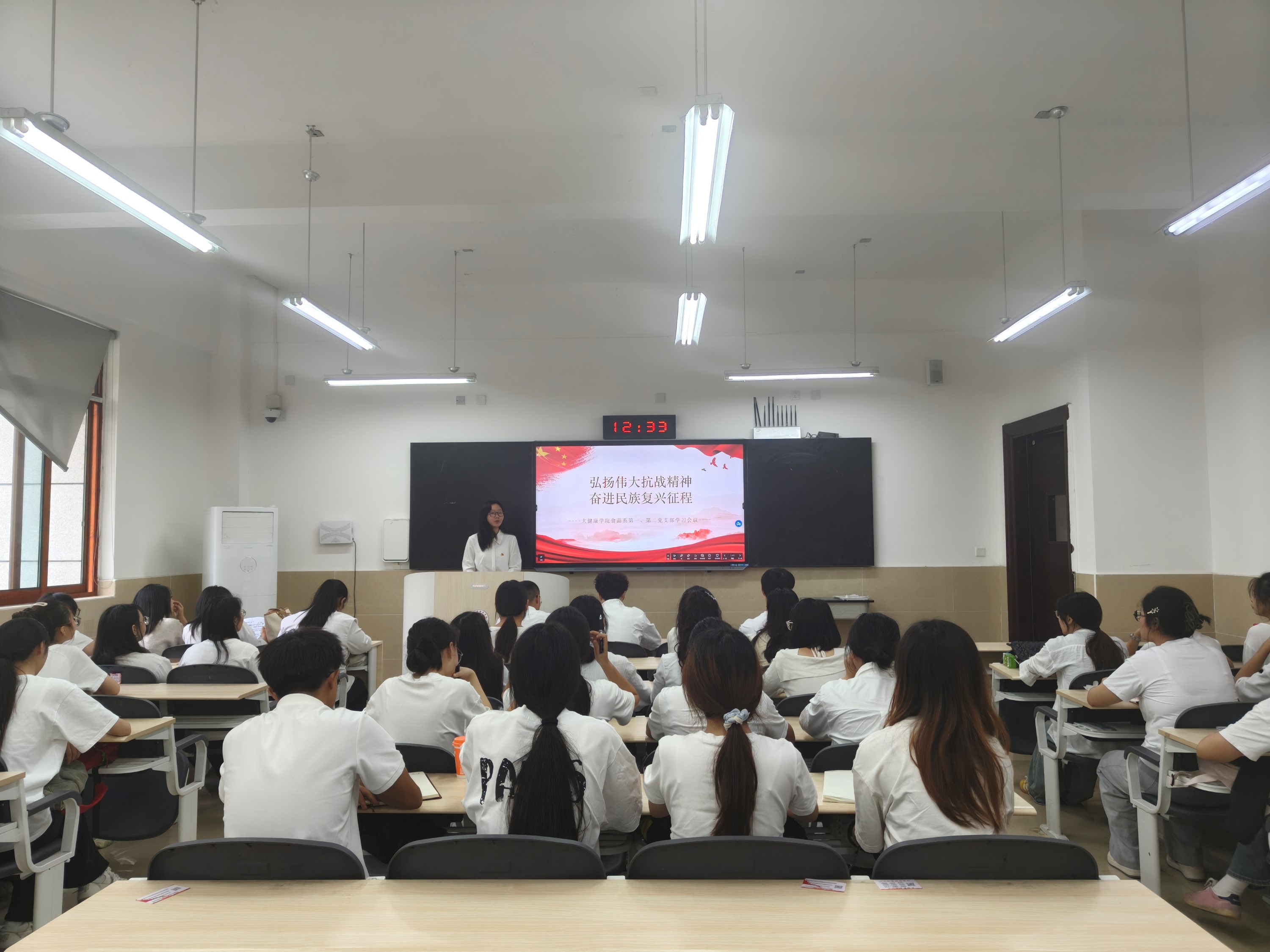 为深入学习与弘扬伟大抗战精神,激励广大党员和积极分子在新时代勇担使命。10月20日,大健康学院食品与酿酒工程系党支部在D208教室开展了“弘扬伟大抗战精神,奋进民族复兴征程”主题学习,在校党员及入党积极分子参加学习。