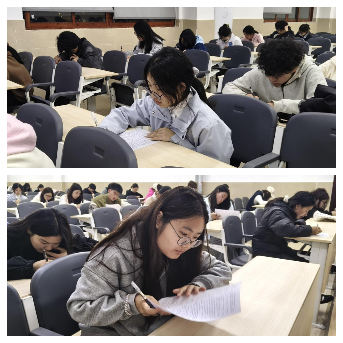 在主持人宣读竞赛规则、强调考场纪律后,比赛正式拉开帷幕。本次初赛试题内容丰富,涵盖组织胚胎学、系统解剖学、病理学等多门核心专业课程,全面考查学生的知识储备与临床思维能力。考场上,参赛同学沉着冷静、认真作答,以严谨细致的态度展现了护理学子扎实的专业基础与优良学风。