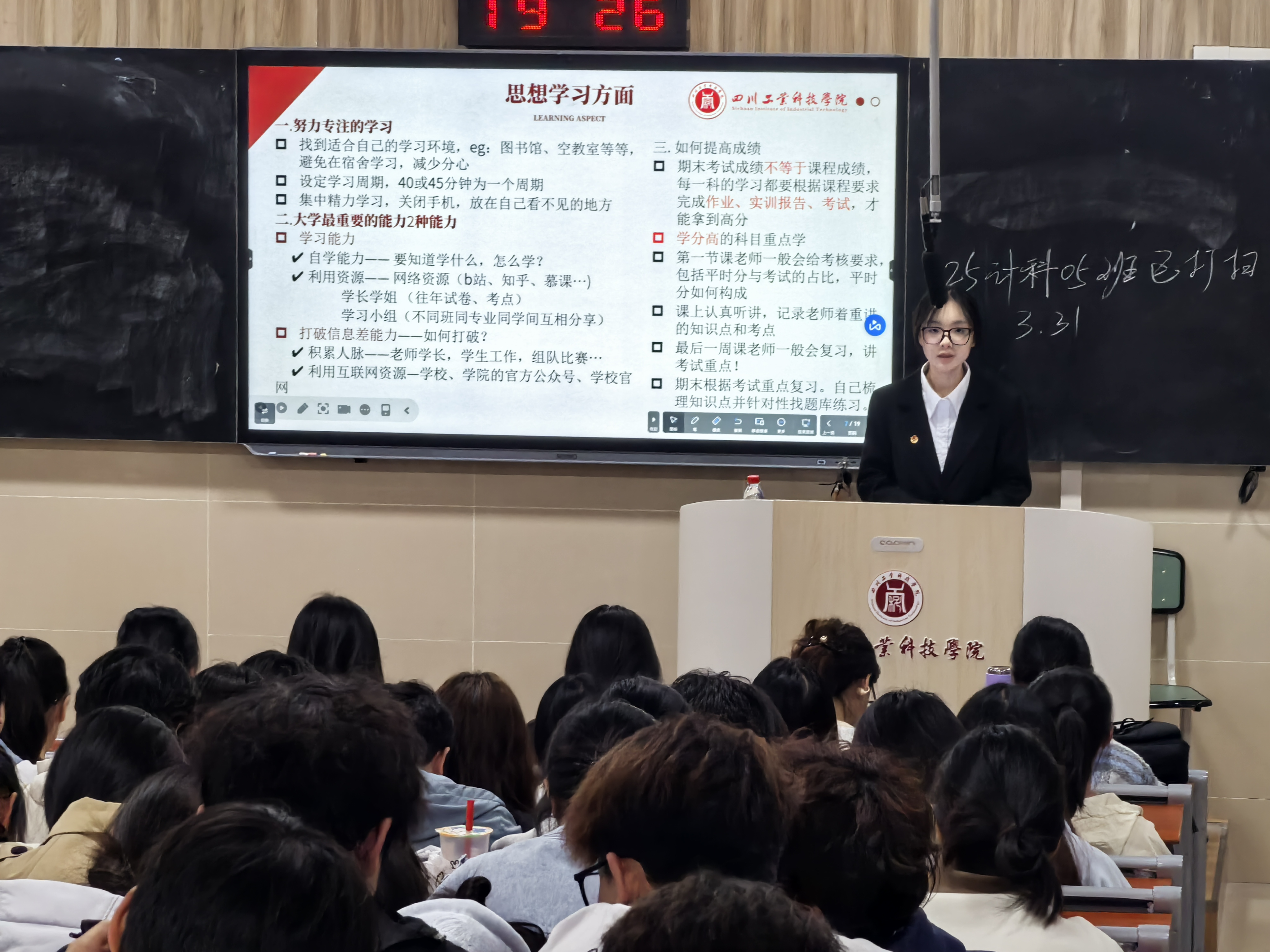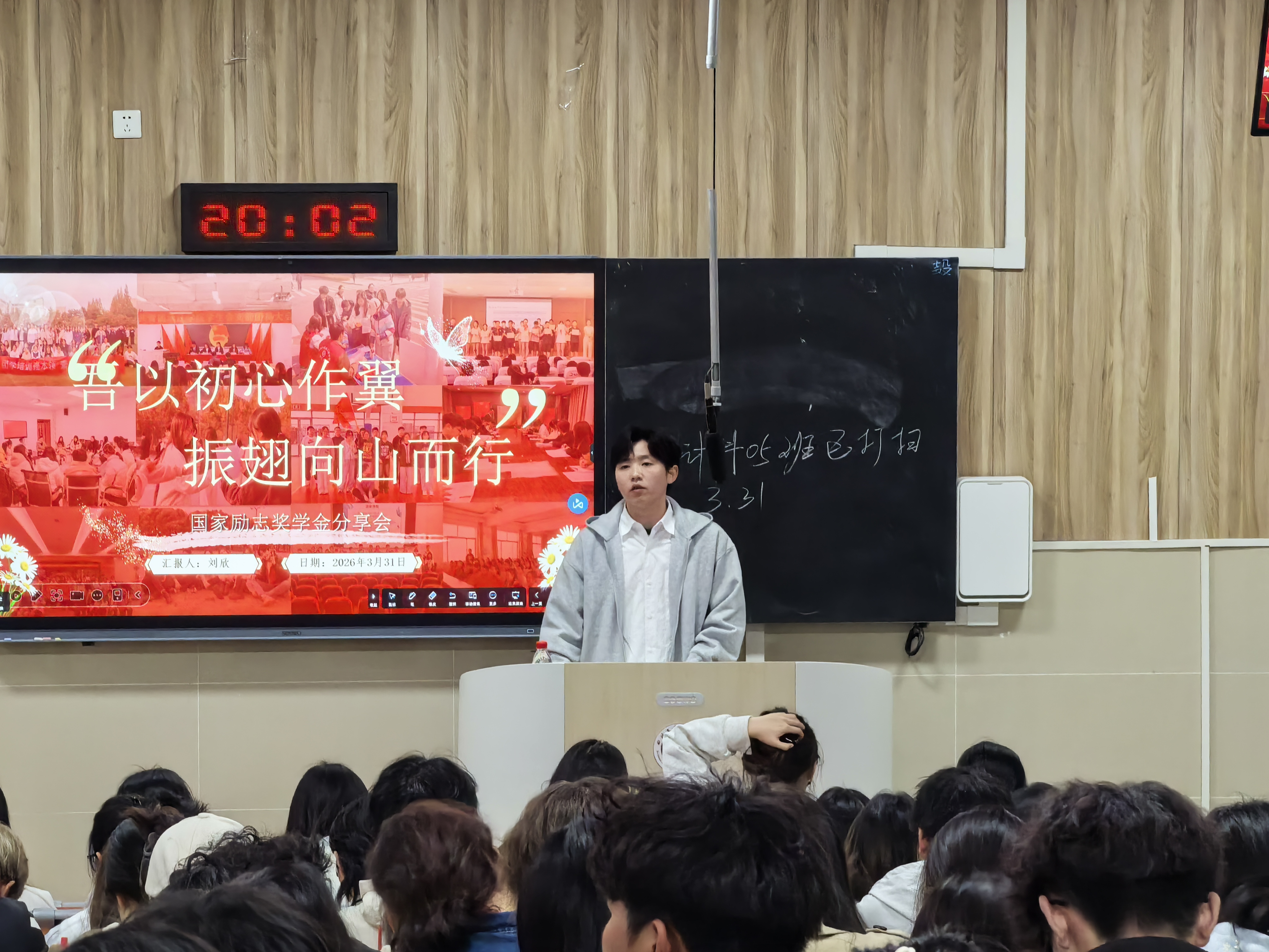 分享会上,四位国家奖学金获得者依次发言,结合自身成长经历,围绕专业课程学习方法、学科竞赛参与心得、班级建设实践、创新创业探索及社会志愿服务等方面,分享了大学期间的学习成果与成长感悟。他们用真实的经历和朴实的语言,讲述了勤学不辍、勇于拼搏的奋斗故事,展现了新时代青年自强不息、追求卓越的精神风貌。