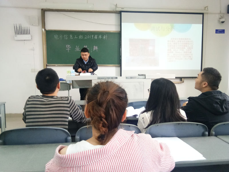 5月11日至6月11日,为期1个月的我院2019届本科生毕业设计(论文)答辩工作顺利结束,电子信息工程专业的168名本科毕业生参加此次答辩,答辩分为14个小组,分别在罗江校区、成都和重庆3个地方进行。为保证答辩工作顺利进行,学院成立了以院长傅成华、院党支部书记龙厚彦为组长的毕业答辩工作领导小组,对答辩工作进行明确分工,责任层层落实。