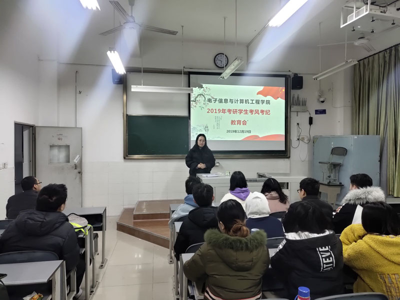 为进一步塑造我院学子诚信应考、严守考纪的优良品行,加强诚信道德建设教育,12月19日下午,我院党支部副书记马娟花组织我院全体即将参加研究生考试的同学们在毓秀103教室召开考风考纪教育会,辅导员代表冯军成出席会议。