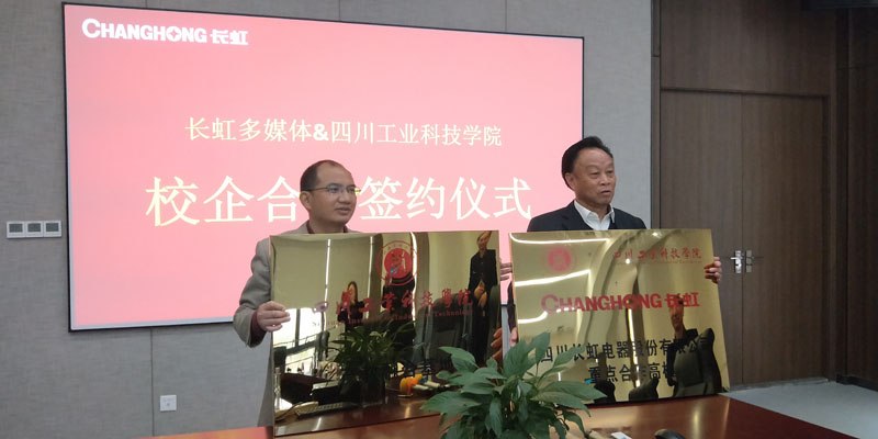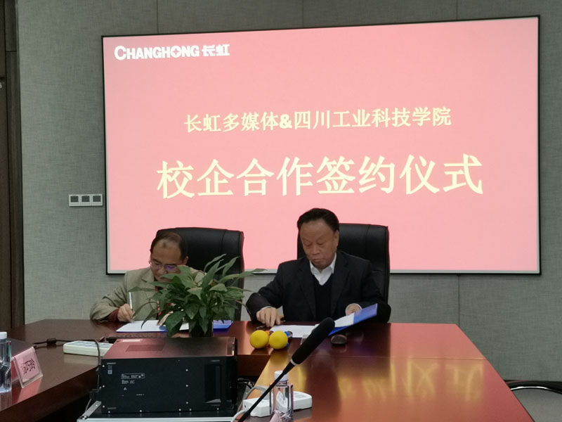 3月31日,四川工业科技学院与四川长虹电器股份有限公司在绵阳高新区长虹智能工业园举行校企产学研战略合作签字仪式,学校副校长何义兴、公司运营总监程勇代表双方在协议上签字。