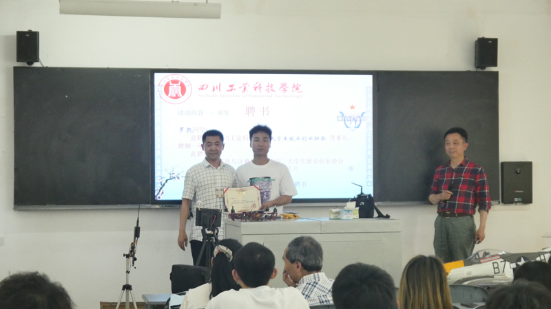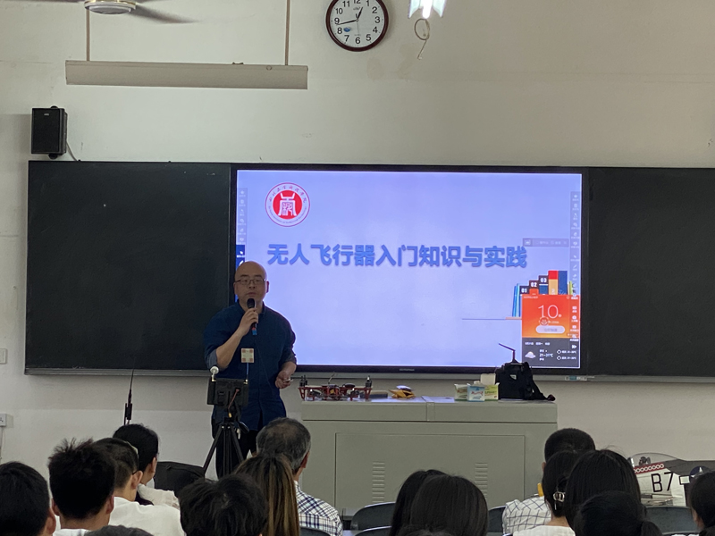 5月31日中午,电子信息与计算机工程学院在钟灵楼206教室举办了无人机科普及体验活动。活动由赵晓江副院长主持,吴建乐院长和龙厚彦书记分别为大学生发明协会、大学生就业创业协会负责人发放聘书,程渝老师进行无人机科普讲座并在五星广场引导师生开展双旋翼和固定翼无人机飞行体验展示活动,马娟花副书记、部分老师及创新创业社团的学生积极分子参加了此次科技周活动,最后全体参与者合影留念。