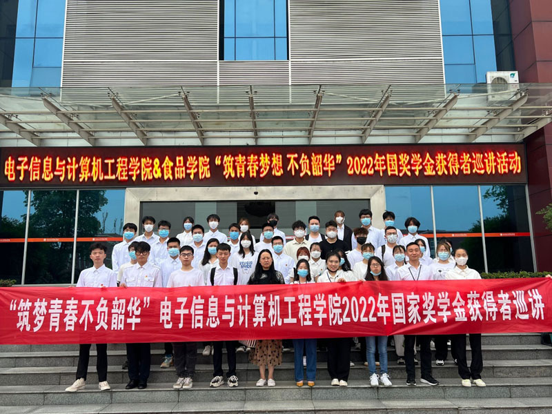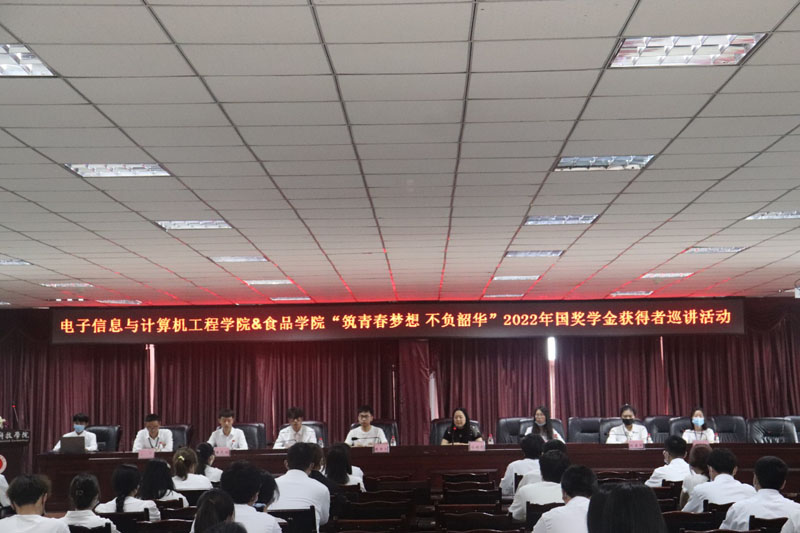 为进一步营造良好的学习氛围,更好地激励学生成长成才,宣传先进学习榜样,电子信息与计算机工程学院&食品学院于5月8日上午在图书馆D08开展了“筑梦青春 不负韶华”2022年国家奖学金获得者巡讲活动。活动由我院团总支书记王波主持。