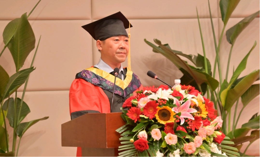 典礼仪式在嘹亮的国歌声中拉开帷幕。院长吴建乐教授暖心致辞,向全体毕业生送上临别寄语和美好祝愿。他希望同学们永远保持进取之心,脚踏实地,追求卓越;时刻坚守责任之心,甘于奉献,勇于担当;持久拥有豁达之心,热爱生活,宽容自信。