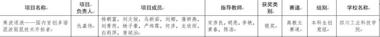 在四川省教育厅发布的《“建行杯”第九届四川省国际“互联网+”大学生创新创业大赛各赛道获奖名单》中,我校电信学院2020级学生仇嘉伟所负责的项目《乘波逐浪--国内首创多谐混波驱鼠技术开拓者》荣获四川省银奖,这是九届大赛以来我校在四川省国际“互联网+”大赛中所取得的突破性进展。