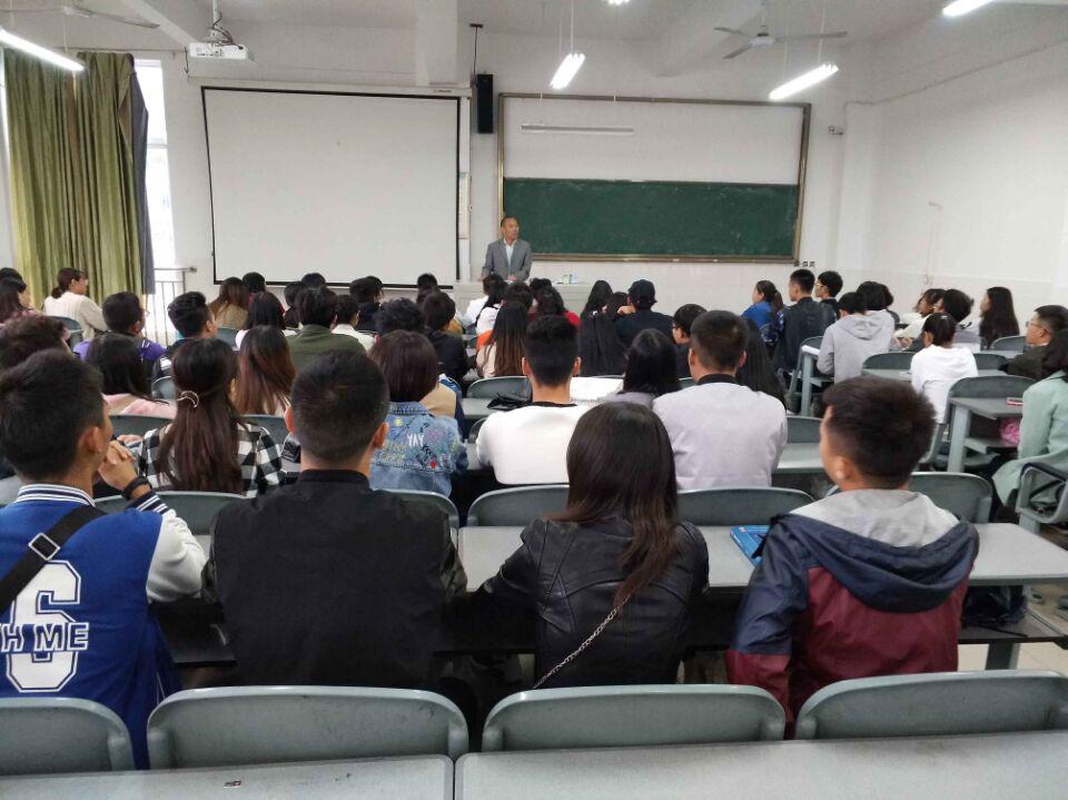 王老师向大家介绍我院党总支陈书记后,伴随着热烈的掌声,陈书记向同学们提出了四点希望:一、学会思考、学会解决问题。二、加强政治修养,增强责任感和大局意识,在学生中起到带头作用,保持优良的思想工作作风。三、正确认知自己的角色地位。学生干部首先要明确自己的第一角色是学生,其次才是干部。四、学生干部的价值。作为学生干部在帮助学院工作的同时也提高了自己的能力,体现了自己的价值。接下来,马老师为大家分享了工作的实用技巧,指出沟通、公平、合作、创新等的重要性。最后,王老师简要总结会议内容。