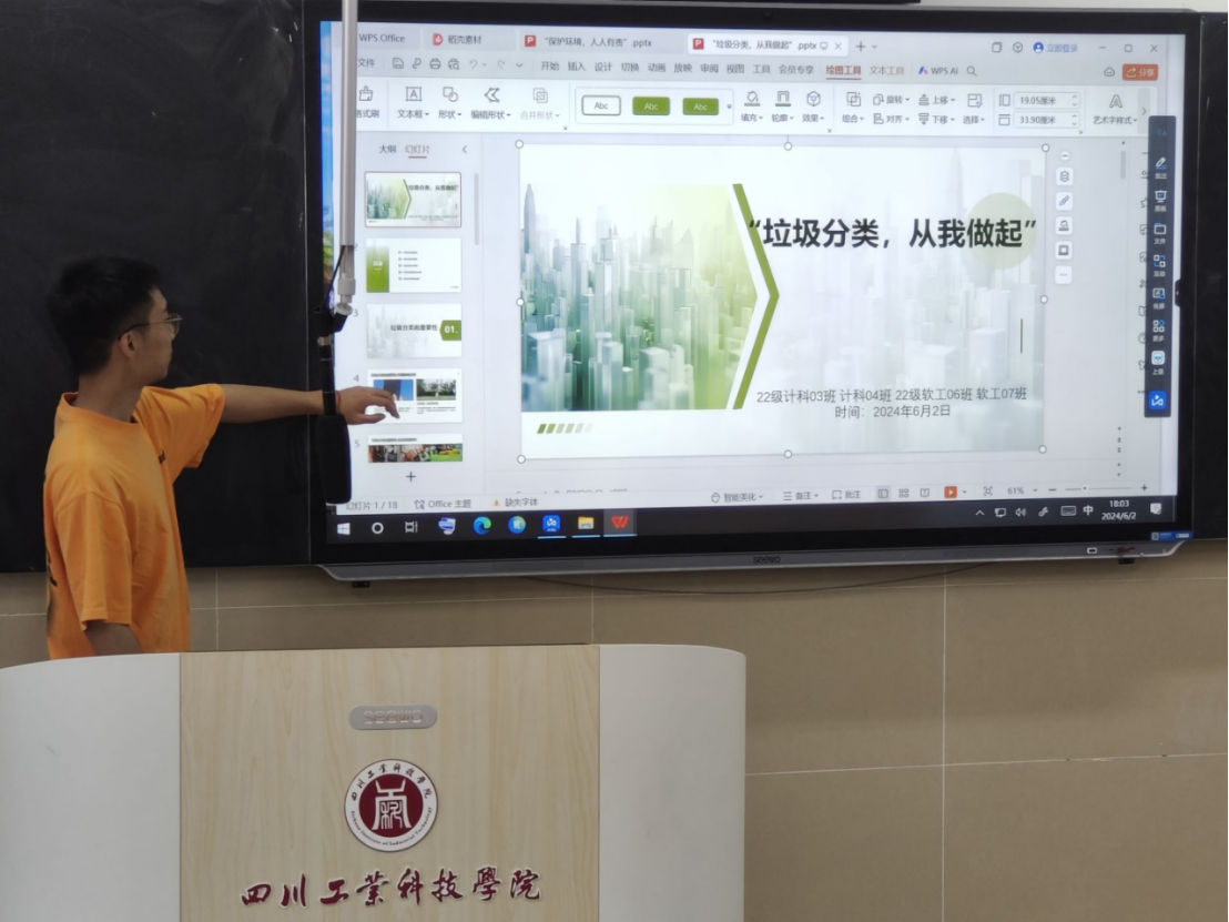 6月2日,全院组织89个行政班级共4439名学生开展了“垃圾分类,从我做起主题班会活动,号召同学们积极参与垃圾分类,践行绿色环保、低碳节能的生活方式,从自身做起,为共创美好校园贡献自己的力量。各班分别从“什么是垃圾分类”“为什么要垃圾分类”“垃圾种类”“我们在行动”等方面探讨了垃圾分类的重要意义,并结合现阶段全球面临的生态问题,强调垃圾分类的重要性,动员同学们从自身做起、从日常小事做起,凝聚环保共识,推动垃圾分类成为低碳校园生活“新时尚”,真正形成“垃圾分类,从我做起”的行动自觉。