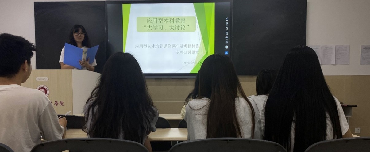 5月8日下午,电子信息与计算机工程学院各部门围绕“应用型人才培养评价标准及考核体系”主题分别开展应用型本科教育“大学习、大讨论”。英语教研室在龑江校区C206教室开展专项学习研讨,活动由教研室主任李竹主持。