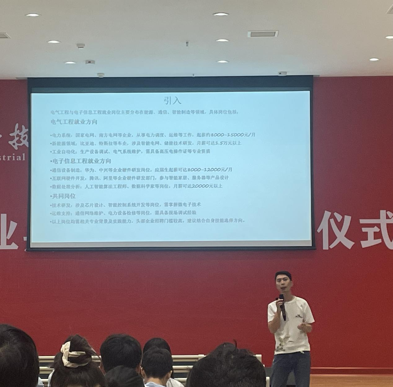 就业指导讲座由裴子春老师主讲,他深入分析了电子信息类专业在当前就业市场中的发展前景,从认清就业形势、调整就业心态、掌握求职技巧到预防求职陷阱等方面进行了全面指导。讲座特别设置了劳动权益保护专题,通过典型案例讲解民法典、劳动法等实用法律知识,帮助学生提升维权意识。许多学生反馈,这场讲座不仅让他们对就业市场有了更全面的认识,也学会了如何根据自身特点选择合适的职业发展方向。