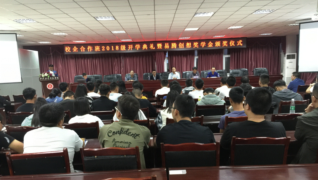 何义兴首先对易腾创想智能科技有限公司对我校人才培养所作的贡献表示感谢,他充分肯定了校企合作班历年来在人才培养和就业方面所取得的成绩。在讲话中,他希望全体同学珍惜学习机会,认真学习企业带来的市场最前沿的理念和专业技能,向本次获得奖学金的同学学习,努力成为社会需要的高素质、高技能型人才。