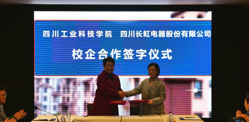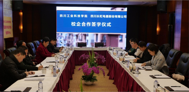 1月3日上午,四川长虹电器股份有限公司制造与供应链管理中心经理王波一行4人到访我校,并与学校签订了校企合作框架协议。学校理事会办公室主任何义兴、副校长郭桂萍、电子信息与计算机工程学院院长傅成华等出席了签字仪式。