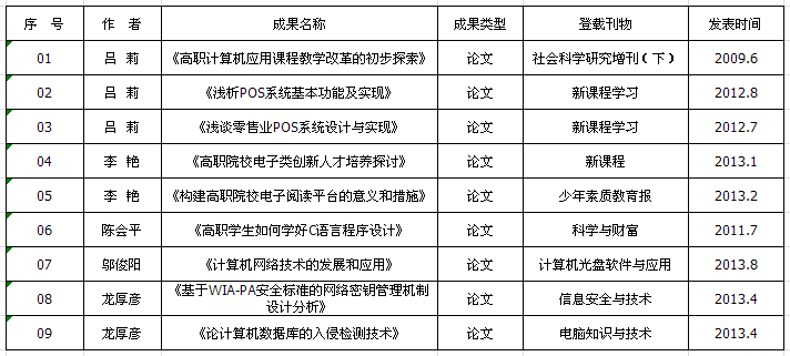 学院部分教师论文发表情况一览表