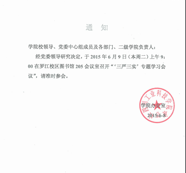 关于“三严三实”专题学习会议的通知