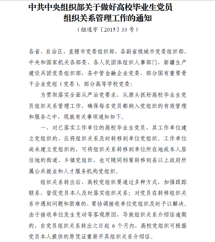 转发关于做好高校毕业生党员组织关系管理工作的通知