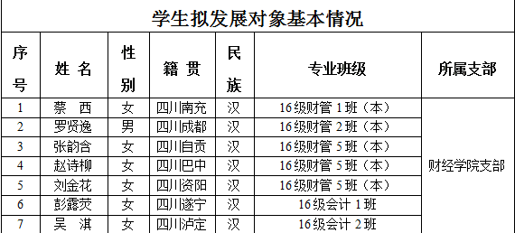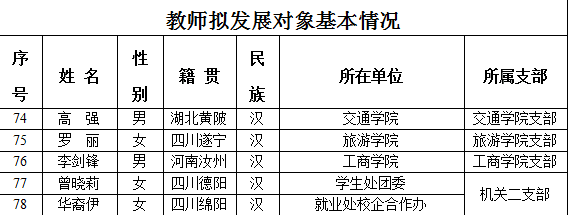 在综合相关部门及培养考察人意见基础上,经各党支部推荐,拟确定下列同志为学校第22批中共预备党员拟发展对象,现予以公示(见下表)。