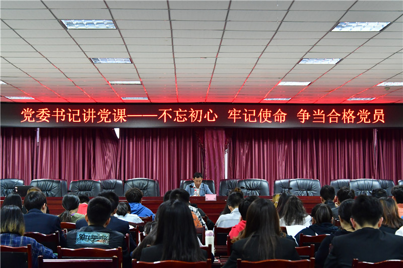 5月29日18:10,校党委书记魏崛在图书馆408会议室以“不忘初心、牢记使命,争做新时代合格共产党员”为主题,为第24批预备党员上了一堂精彩的党课。学校各支部本期新发展的近100名预备党员聆听了此次党课。