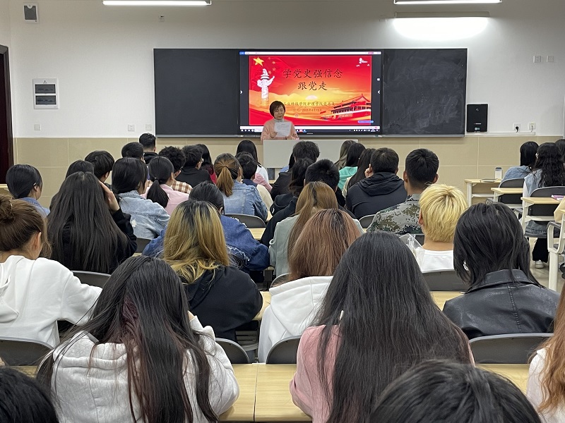 自党史学习教育活动全面启动以来,为结合实际高标准高质量开展党史学习教育,做到学史明理、学史增信、学史崇德、学史力行,确保党史学习教育取得实实在在的成效, 4月15日,护理学院党总支在东区教学楼8-211教室开展了“学党史 强信念 跟党走”党史学习教育活动。学院院长、副院长、党(团)总支书记、副书记、“五·四”优秀团干、优秀团员、入党积极分子和青年教师共计90余人参加了活动,活动由学院党总支副书记李双晶主持。
