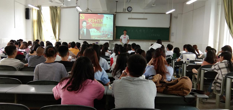 5月2日、3日中午,工商管理学院党支部在毓秀楼101教室召开习近平新时代中国特色社会主义思想和党的十九大精神专题学习会。学院教师、学生党员、预备党员、入党积极分子参加了专题学习会。