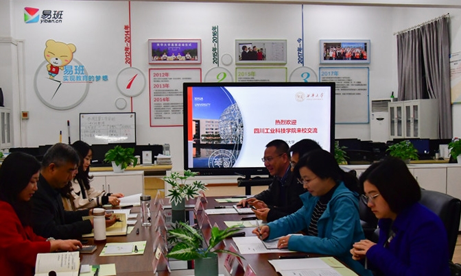 西华大学党政办公室主任黄进介绍了学校的历史沿革、校园文化和办学成果。党委宣传部部长山述兰、副部长熊华分别就该校宣传思想政治工作和易班建设进行了介绍。易班优秀辅导员杨恒以“文以化人,学以成人”为题详细介绍了基层辅导员如何利用易班线上平台进行学生思想政治教育和班级管理的特色做法。