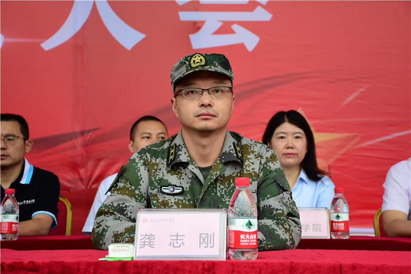学校校长张小南、德阳市罗江区人民武装部副部长龚志刚、校领导何义兴、党委副书记倪霞、副校长郭桂萍、副校长黄斯欣和相关职能部门、各二级学院的党政主要负责人就坐主席台。