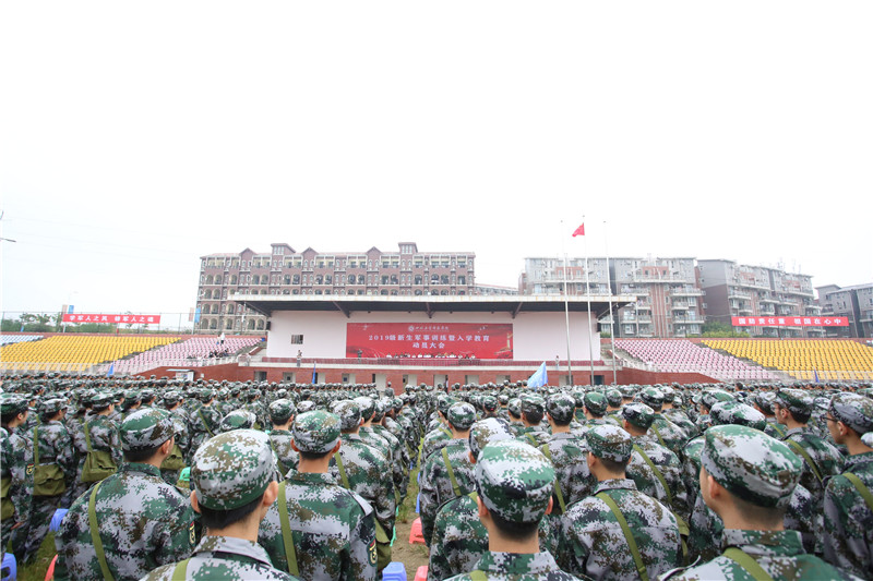 旌旗飞舞,号声嘹亮。9月2日上午8时,四川工业科技学院2019级新生军事训练暨入学教育动员大会分别在罗江校区和绵竹校区田径场举行。