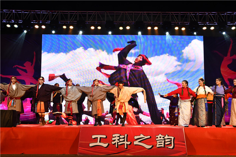 晚会中,十二个异彩纷呈的文艺节目,为在场师生带来了一场视听盛宴。舞蹈《我爱中国》《炫酷青春》《织彩》等秀出信仰和青春活力;萨础拉带来悠远蜿蜒直抵内心的歌曲《鸿雁》,清澈的嗓音和呼麦演绎乡愁成长,以及用力的遥望未来《盖碗茶》《花妖邵多丽》更是赢得师生一致好评;体育技能展示《百花齐放醉校园》散发青春的荷尔蒙,再一次将晚会推向高潮,整场晚会在气势磅礴的大合唱《一路高歌创辉煌》与热血沸腾《爱我中华》和燃放绚丽的烟花中落下了帷幕。