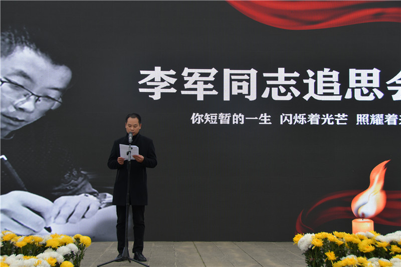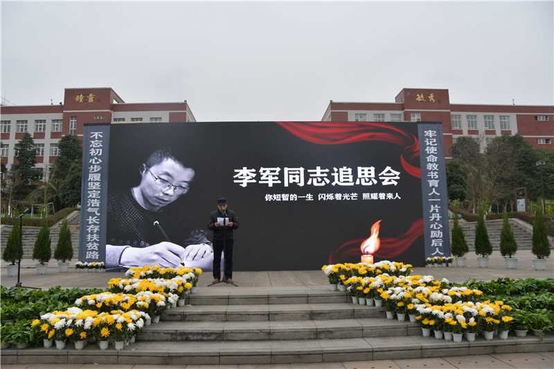 为缅怀李军同志,在全校师生中进一步掀起学习李军同志在扶贫攻坚和学校工作期间先进事迹的热潮,学校于12月23日在五星广场举行了主题为“你短暂的一生,闪烁着光芒,照耀着来人”的李军同志追思会。前来缅怀的有省教育厅党建处处长贾贵州、马尔康市委常委、宣传部长龙海峰、德阳市委教育工委专职副书记刘艳、德阳市罗江区教育局局长刘远洋、沙尔宗镇人民政府镇长肖林、沙尔宗镇人民政府办公室容中八尔姆和村民代表祝昌海。参加追思会的还有李军同志生前亲朋好友及学生,省、市、区级相关媒体朋友,全体校领导,各部门、二级学院全体教职工及部分学生代表。