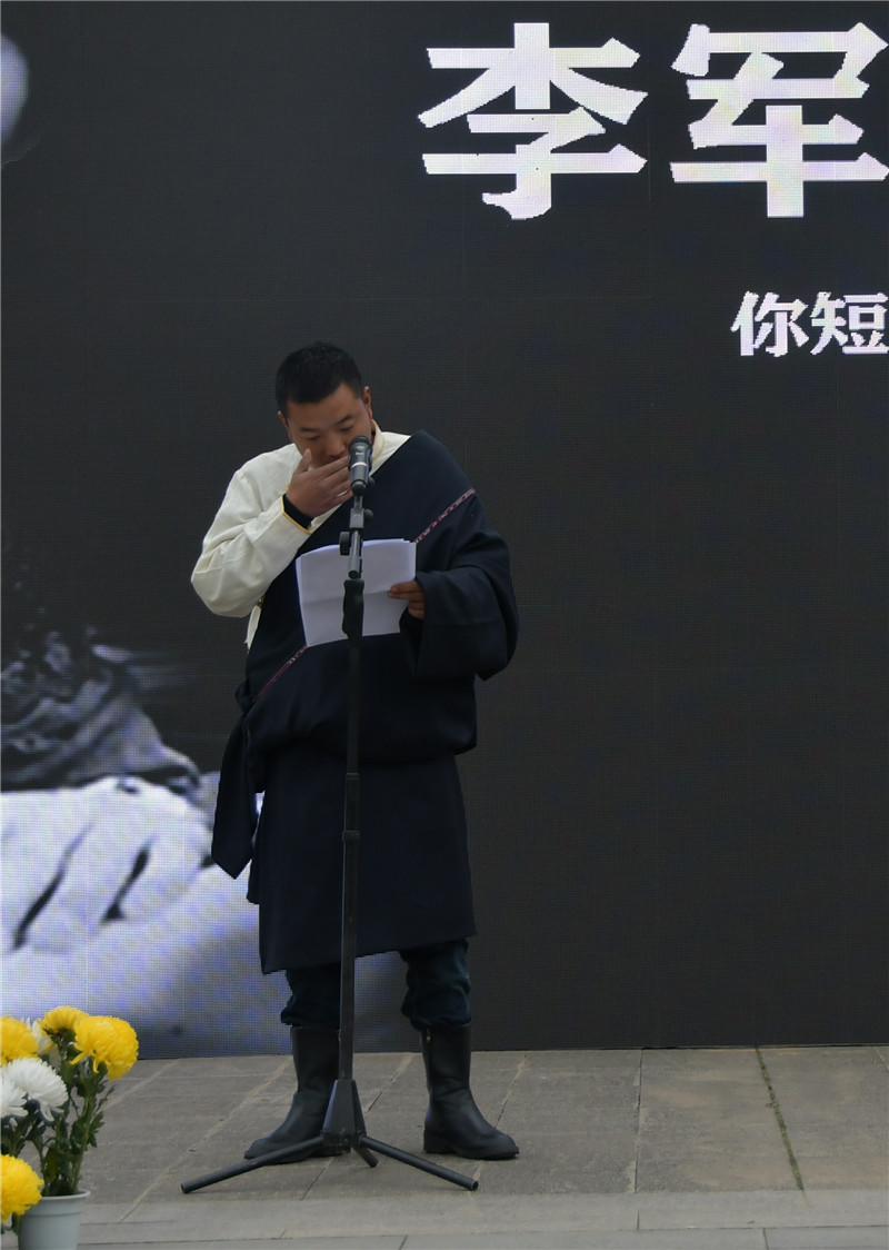 龙海峰同志代表马尔康市委、市人民政府和6万马尔康人民对李军同志的离世表示沉痛哀悼,向李军同志的亲友和四川工业科技学院全体师生表示亲切问候。李军同志在帮扶期间为马尔康市、沙尔宗镇所做出的贡献有目共睹,700多个日夜的坚守,李军同志的生命印记已经刻在了沙尔宗每个干部群众的心里。他表示,马尔康市全体干部会继续完成李军同志未尽的工作,谱写脱贫攻坚更壮丽的诗篇。